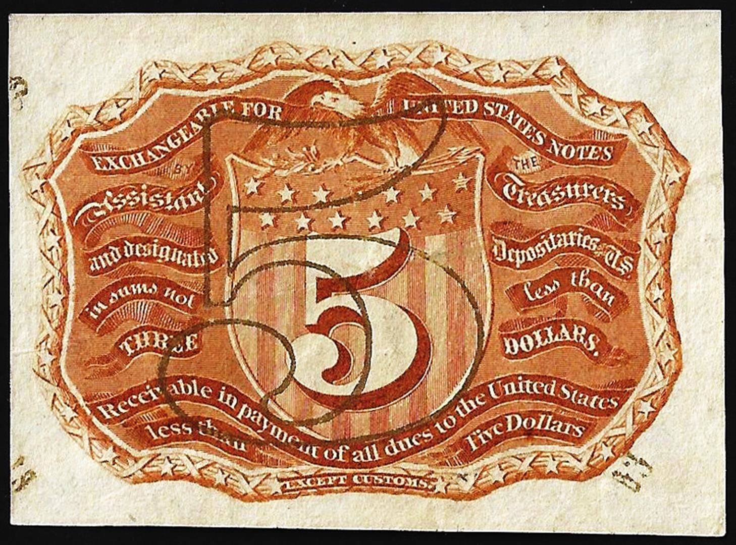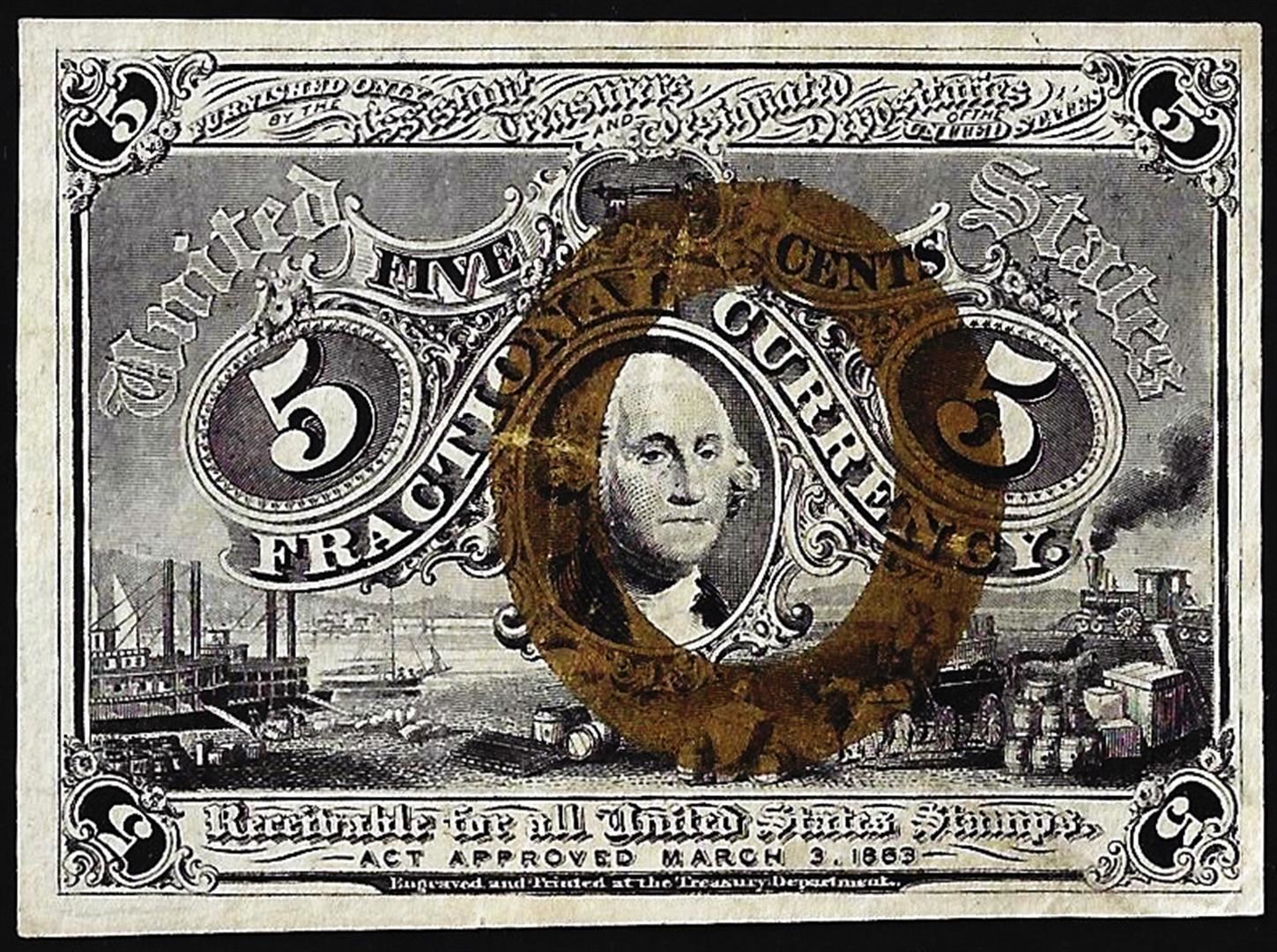 One March 3, 1863 Five Cents Second Issue Fractional Currency Note.