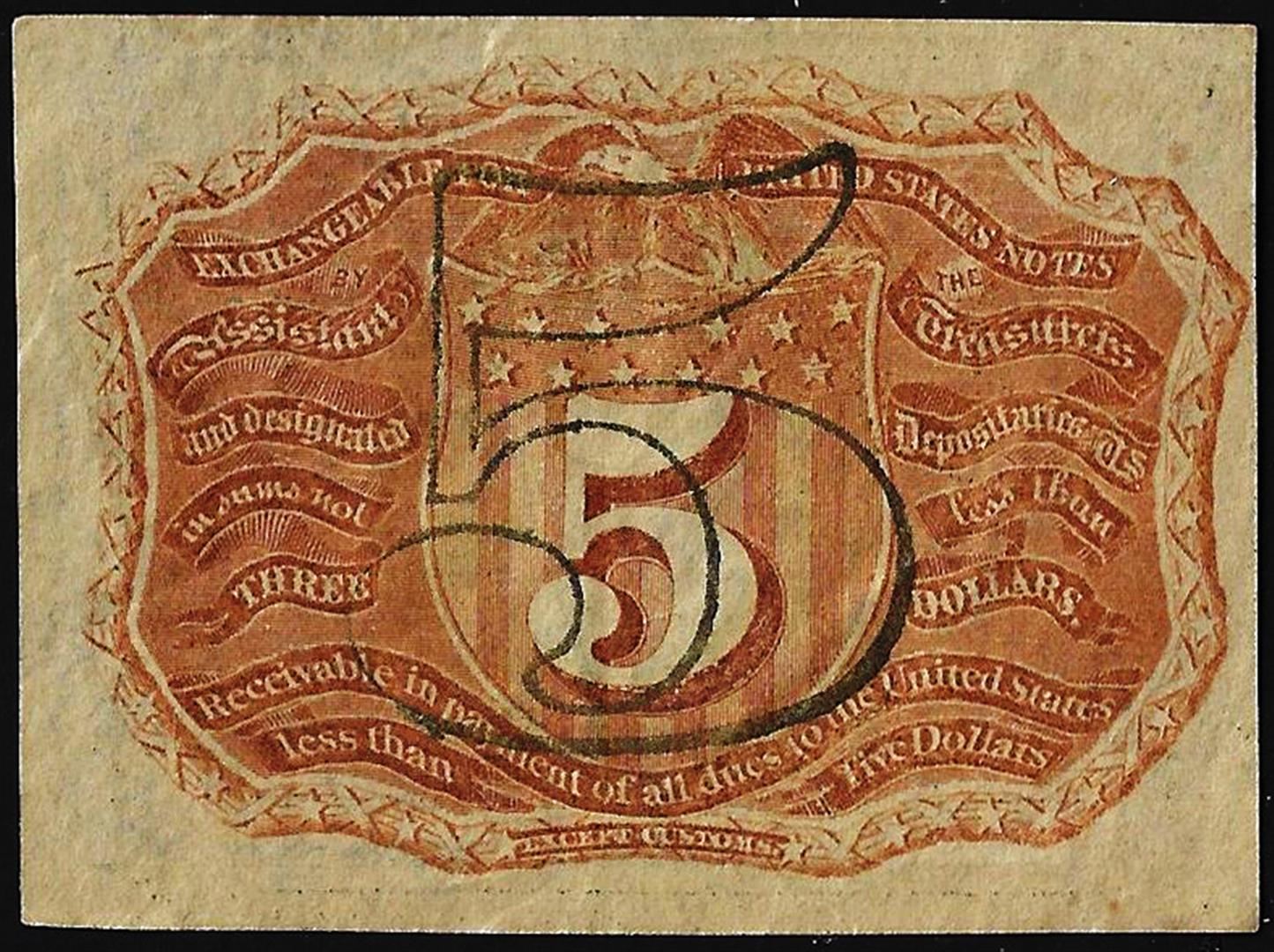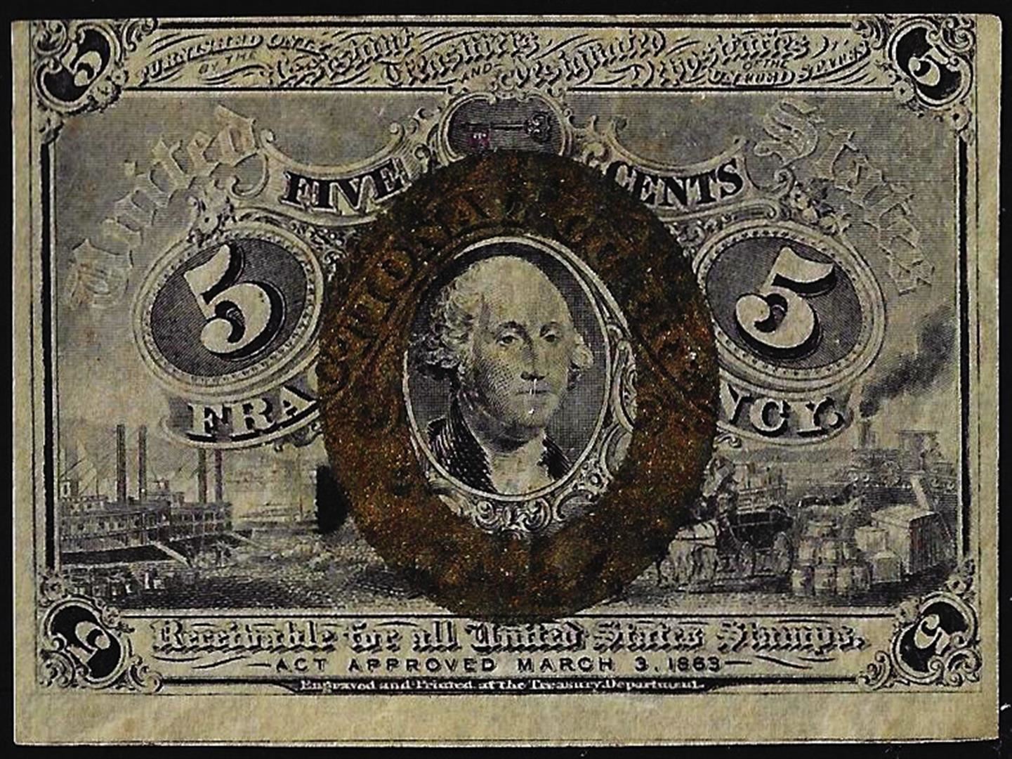 One March 3, 1863 Five Cents Second Issue Fractional Currency Note.