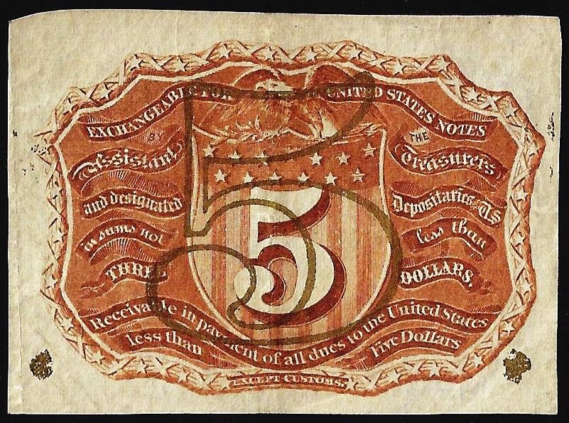 One March 3, 1863 Five Cents Second Issue Fractional Currency Note.