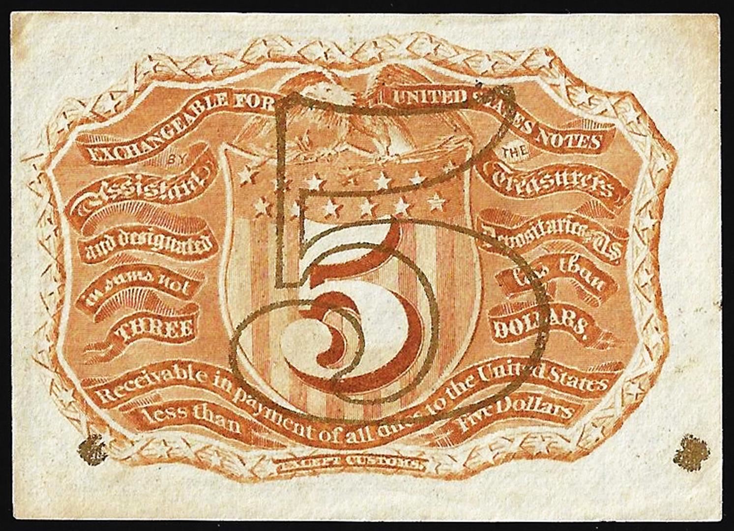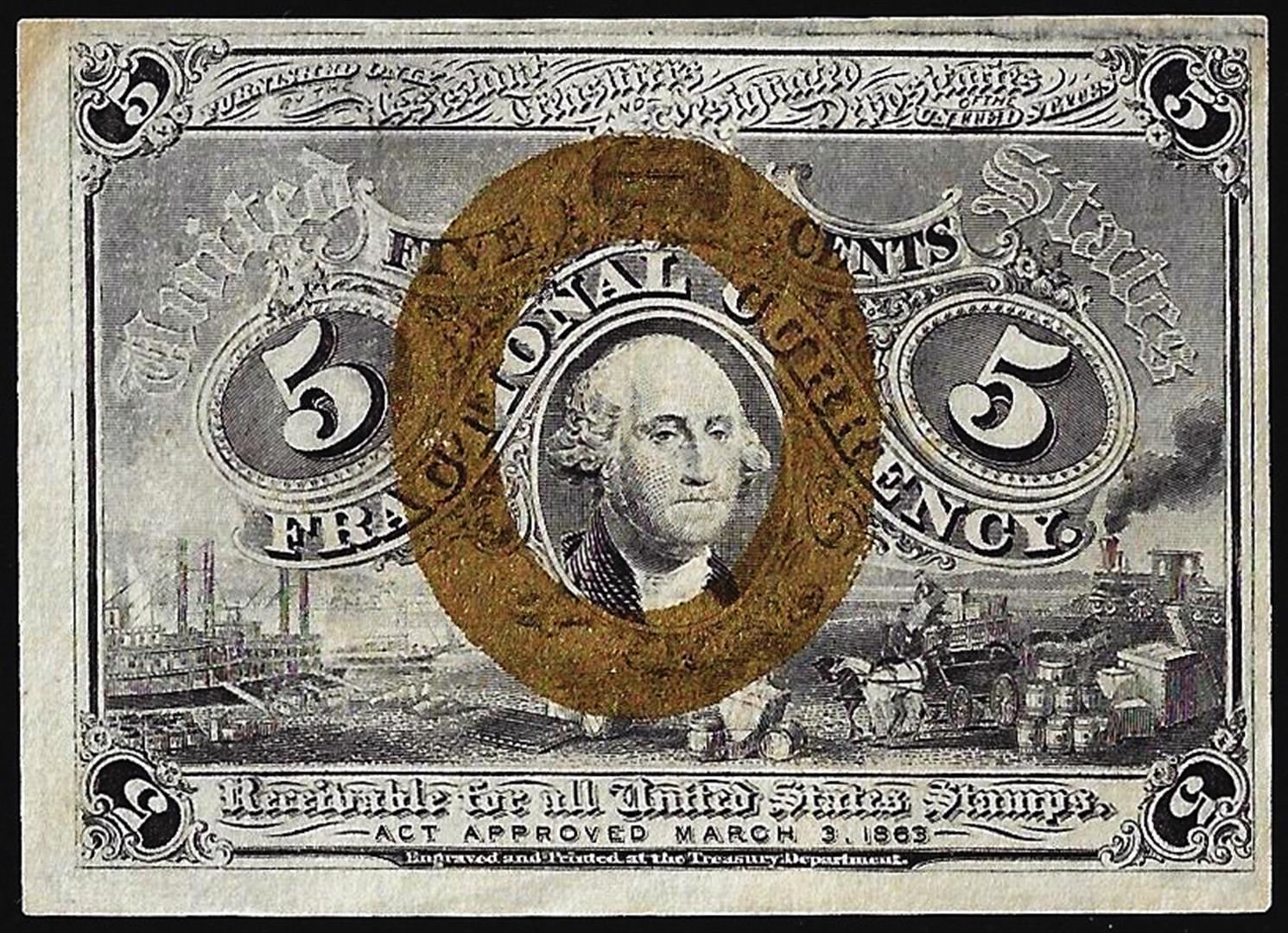 One March 3, 1863 Five Cents Second Issue Fractional Currency Note.
