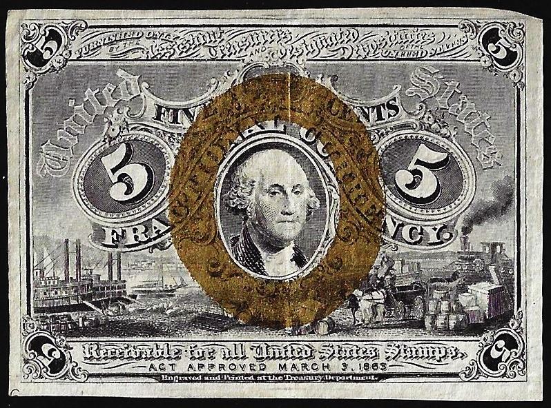 One March 3, 1863 Five Cents Second Issue Fractional Currency Note.