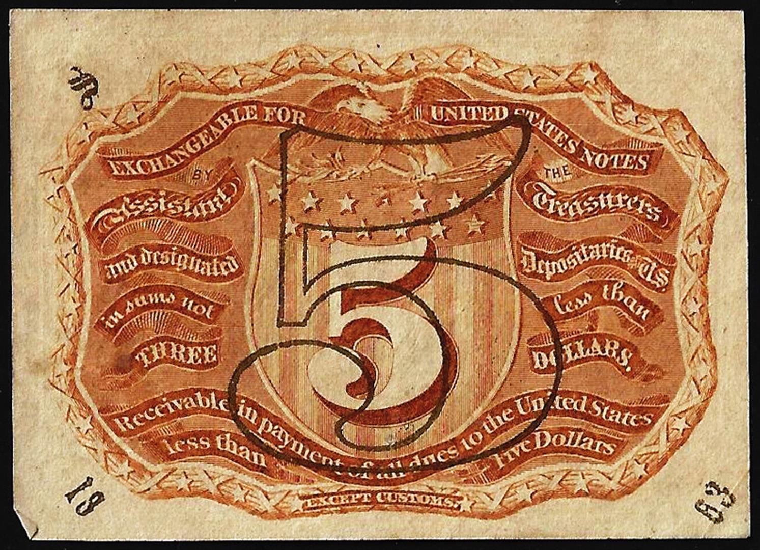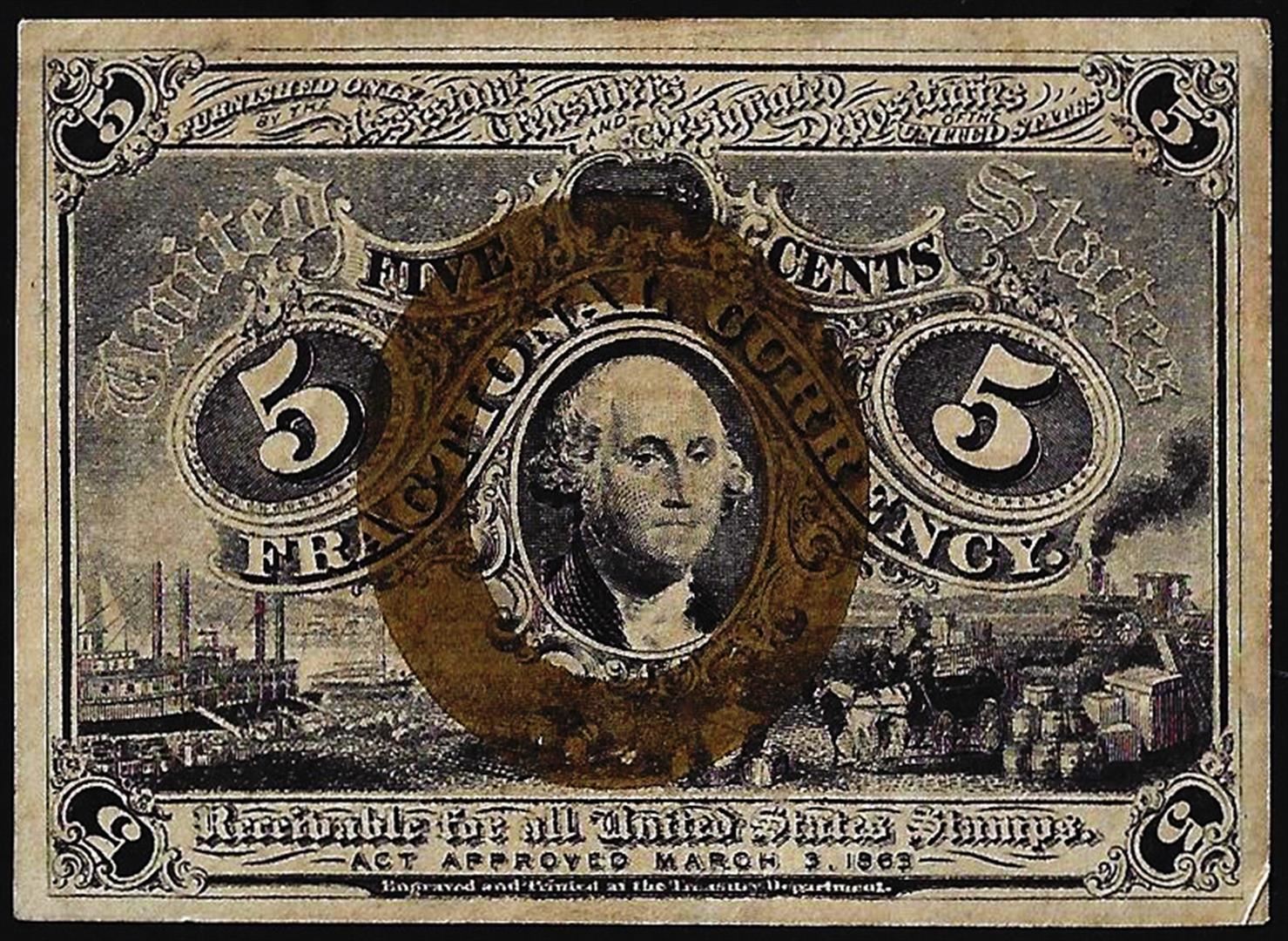 One March 3, 1863 Five Cents Second Issue Fractional Currency Note.