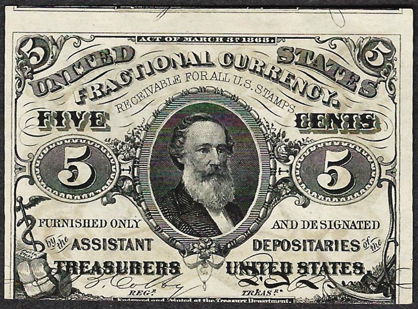One March 3, 1863 Five Cents Third Issue Fractional Currency Note.