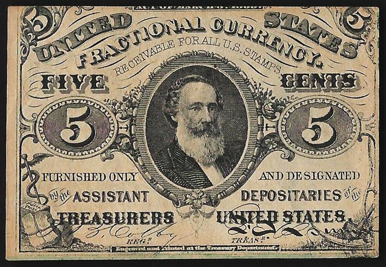 One March 3, 1863 Five Cents Third Issue Fractional Note.