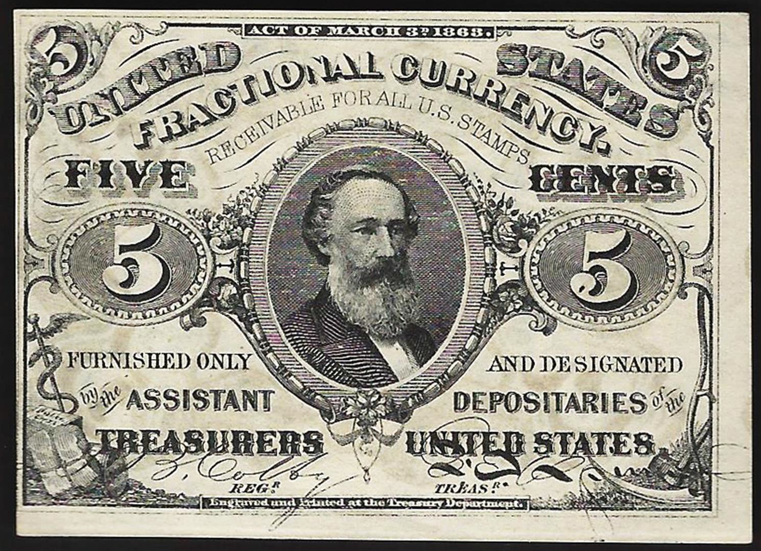 One March 3, 1863 Five Cents Third Issue Fractional Note.