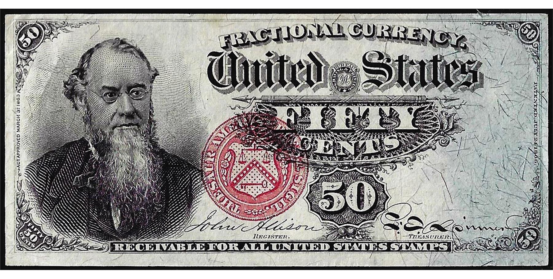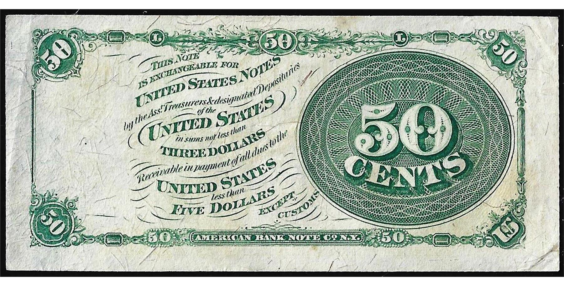 One March 3, 1863 Fourth Issue 50 Cent Fractional Currency Note.