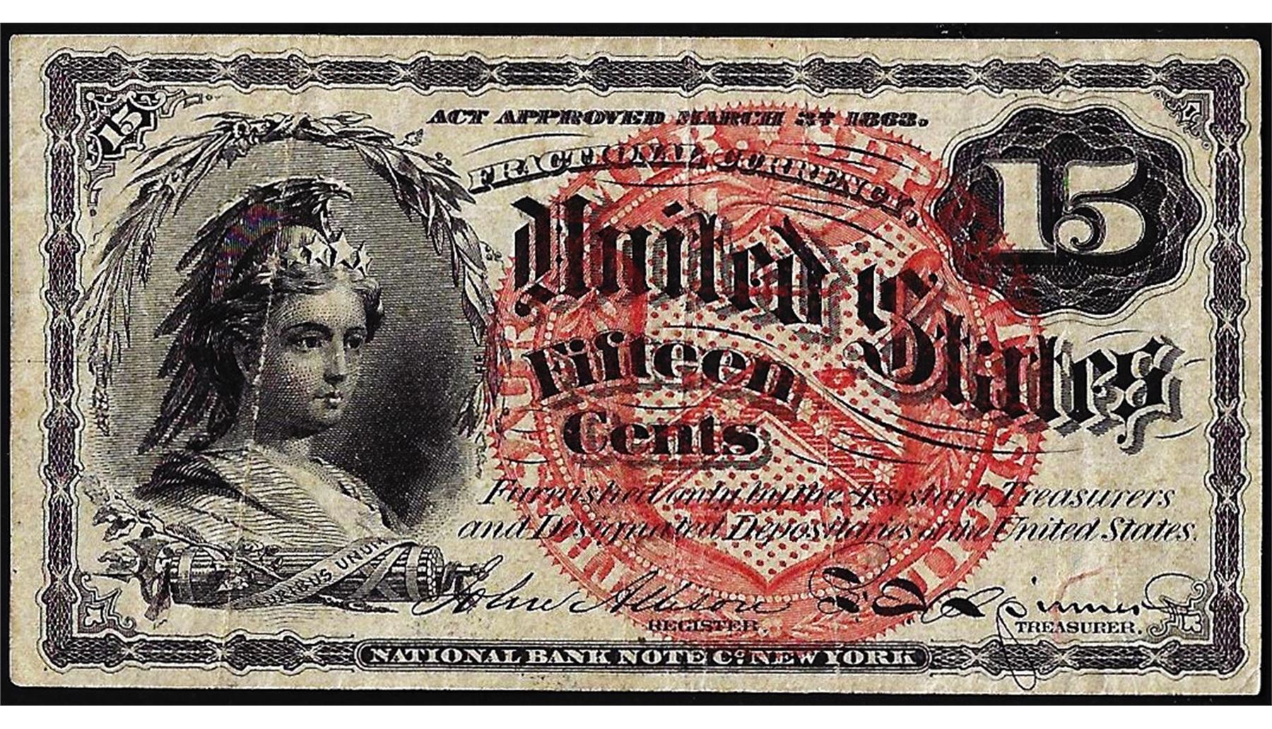 March 3, 1863 Fourth Issue Fifteen Cent Fractional Currency Note
