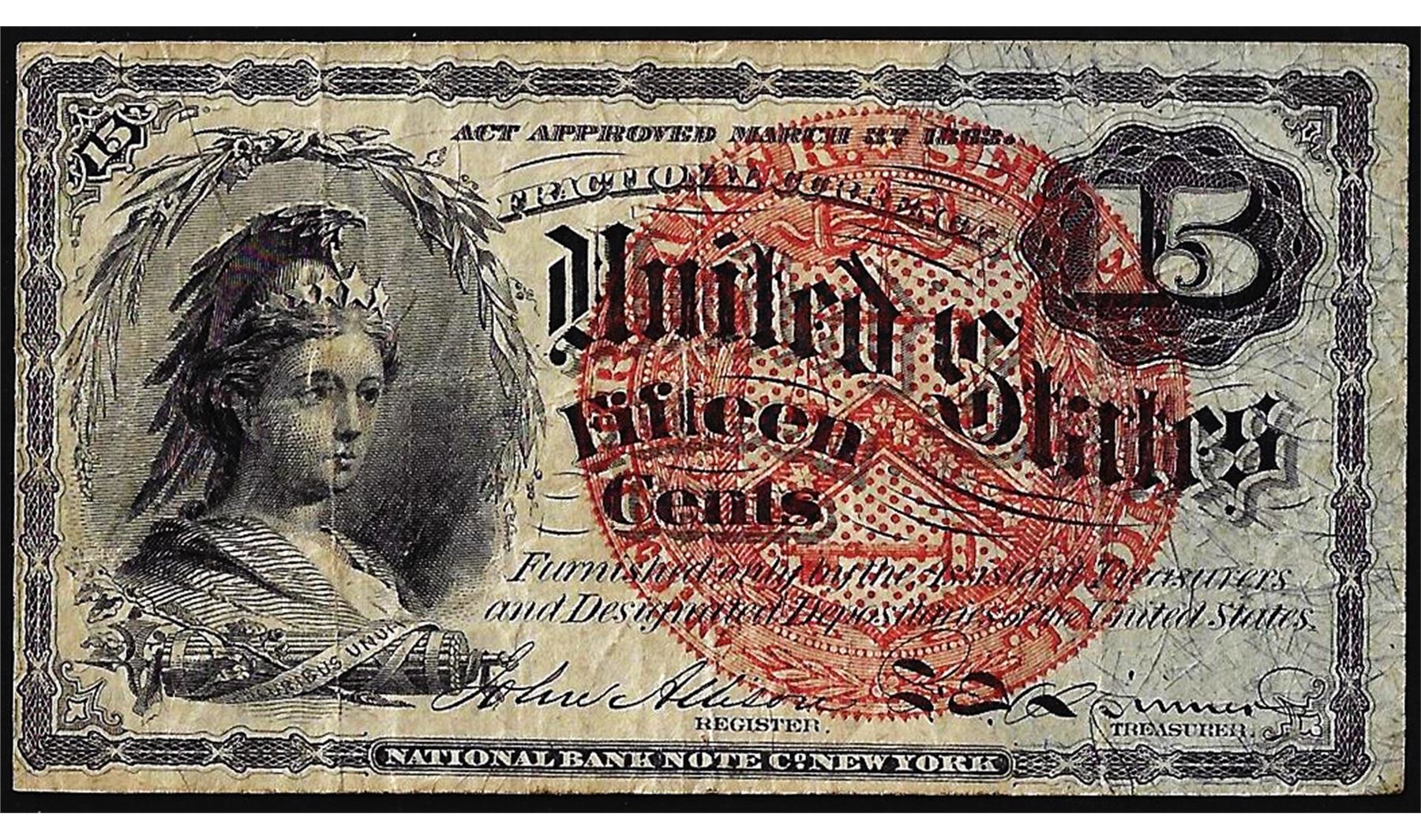 One March 3, 1863 Fourth Issue Fifteen Cent Fractional Currency Note.