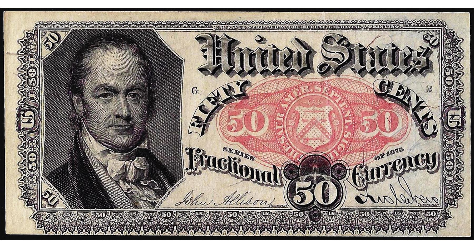 One March 3, 1863 Fourth Issue Fifty Cents Fractional Currency Note.