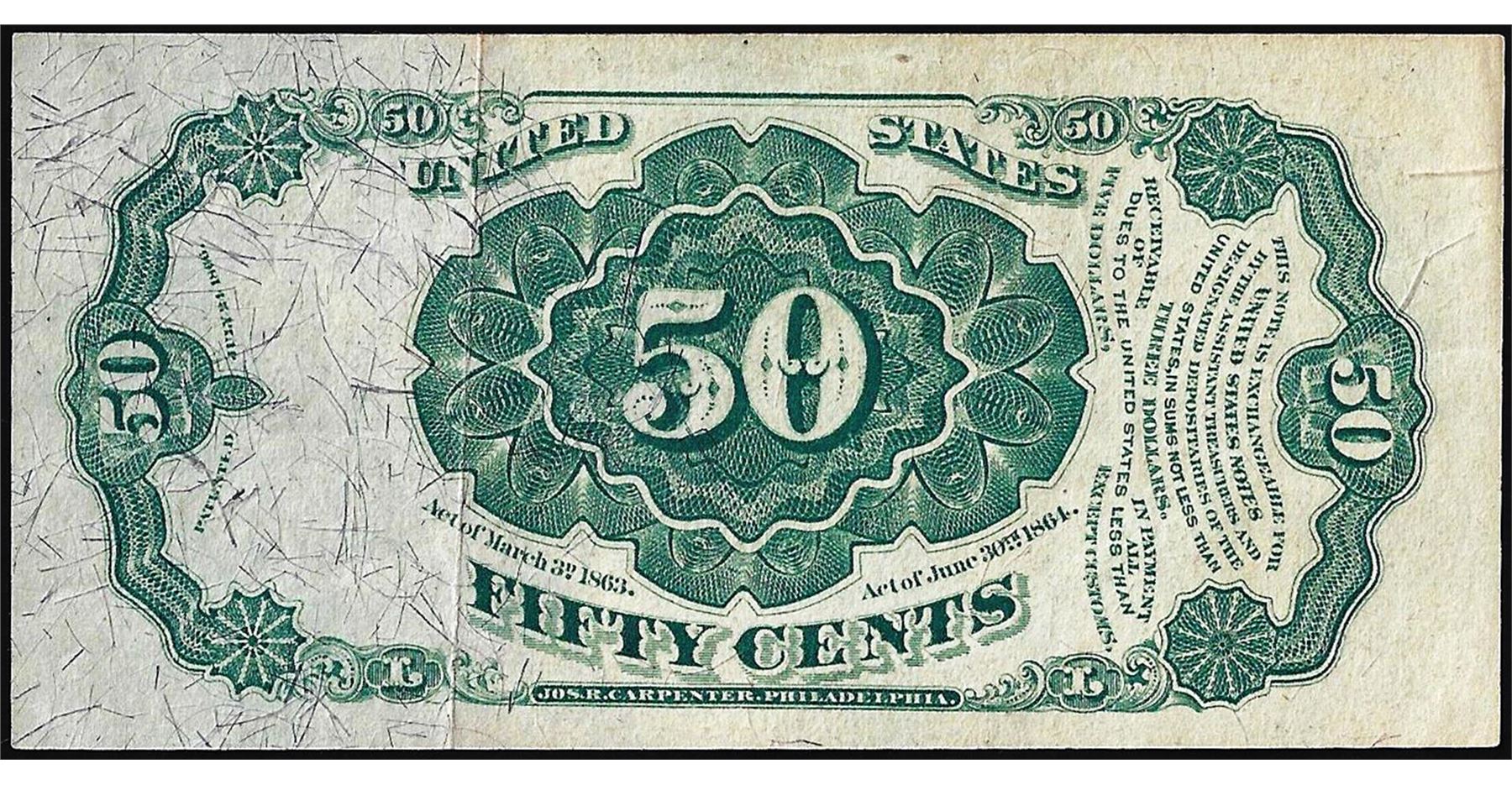 March 3, 1863 Fourth Issue Fifty Cents Fractional Currency Note