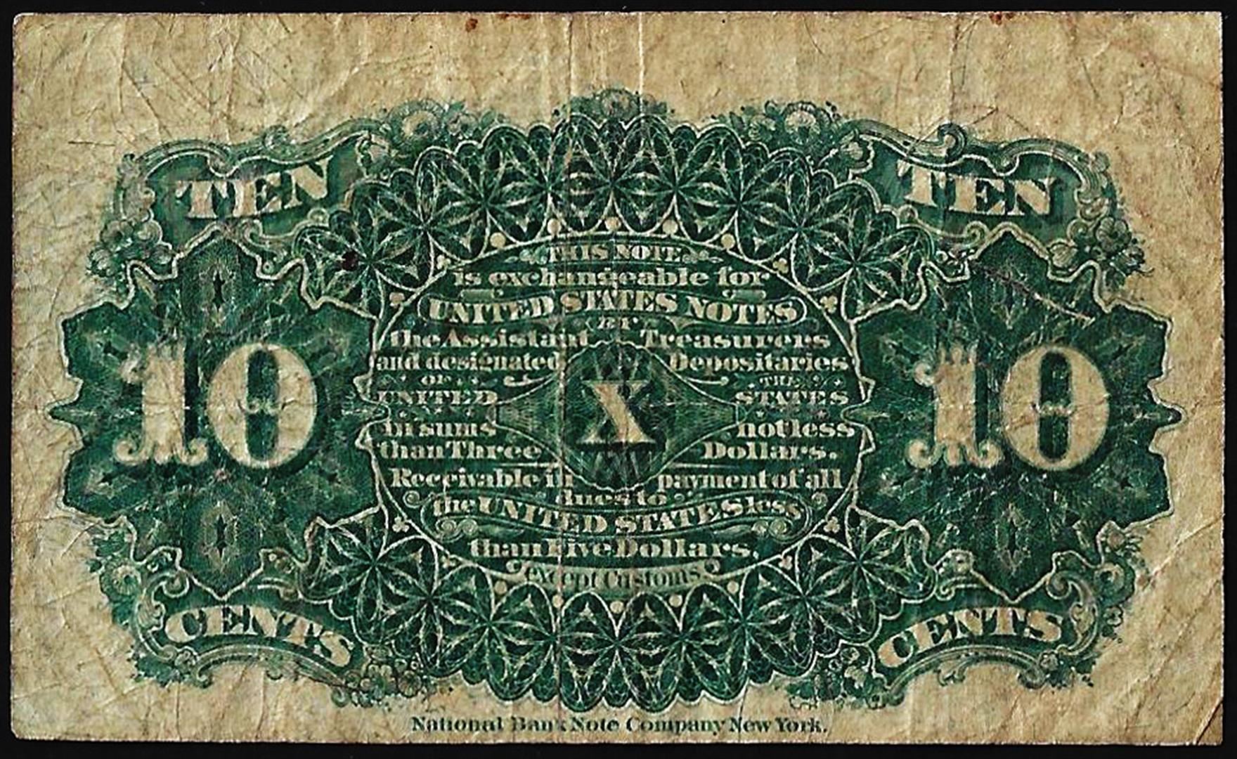 One March 3, 1863 Fourth Issue Ten Cents Fractional Currency Note.