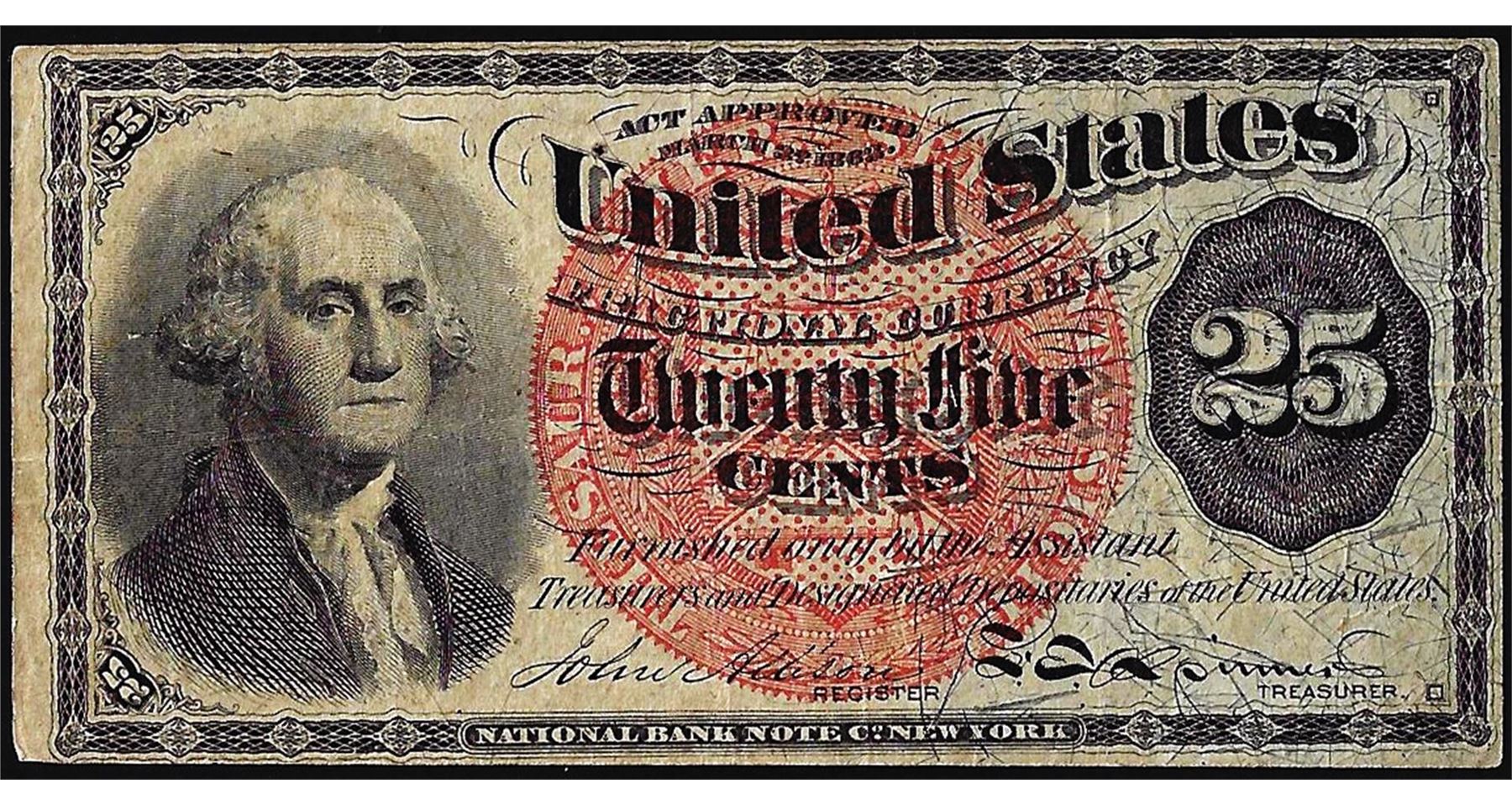 One March 3, 1863 Fourth Issue Twenty-Five Cents Fractional Currency Note.