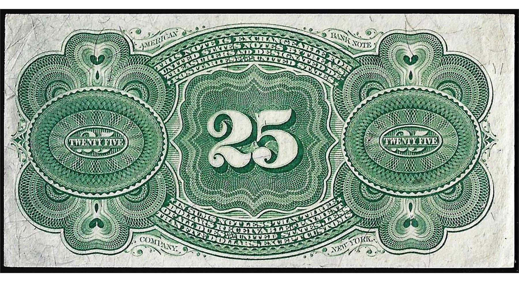 One March 3, 1863 Fourth Issue Twenty-Five Fractional Currency Note Pinholes.