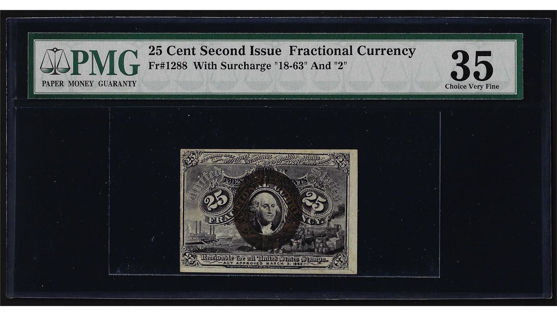 One March 3, 1863 Second Issue 25 Cent Fractional Currency Note PMG Choice Very Fine 35. PMG Certified.