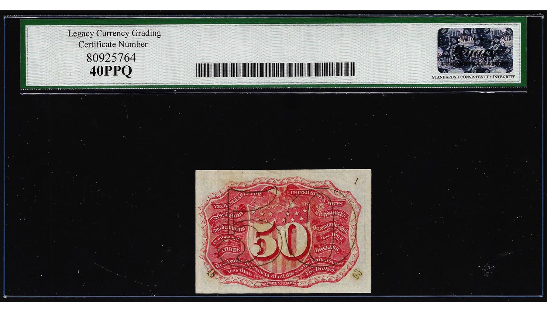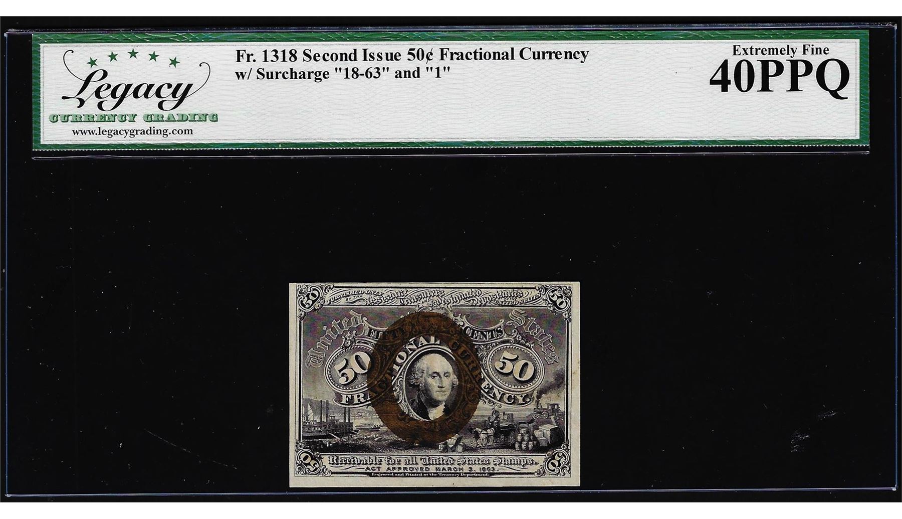 One March 3, 1863 Second Issue Fifty Cent Fractional Note Fr.1318 Extremely Fine 40PPQ. Legacy Graded.