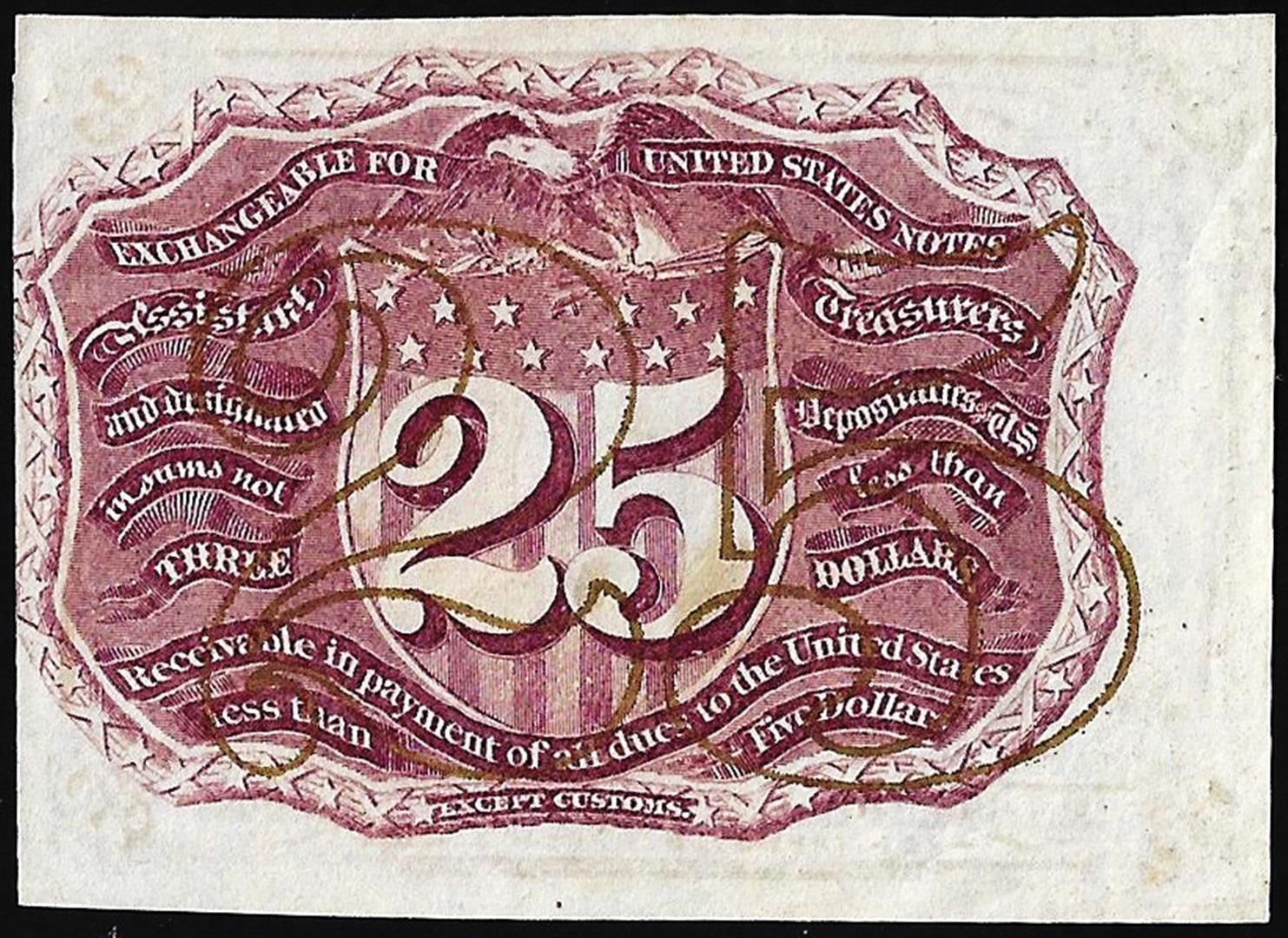 One March 3, 1863 Second Issue Twenty-Five Cents Fractional Currency Note.