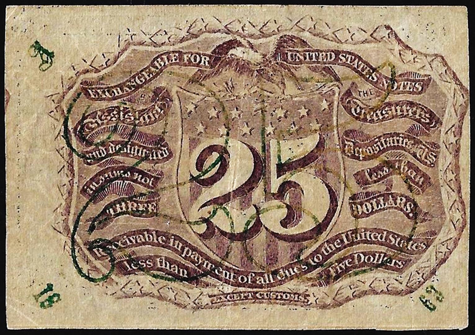 One March 3, 1863 Second Issue Twenty-Five Cents Fractional Currency Note.