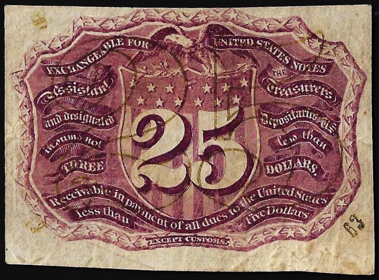 One March 3, 1863 Second Issue Twenty-Five Cents Fractional Currency Note.