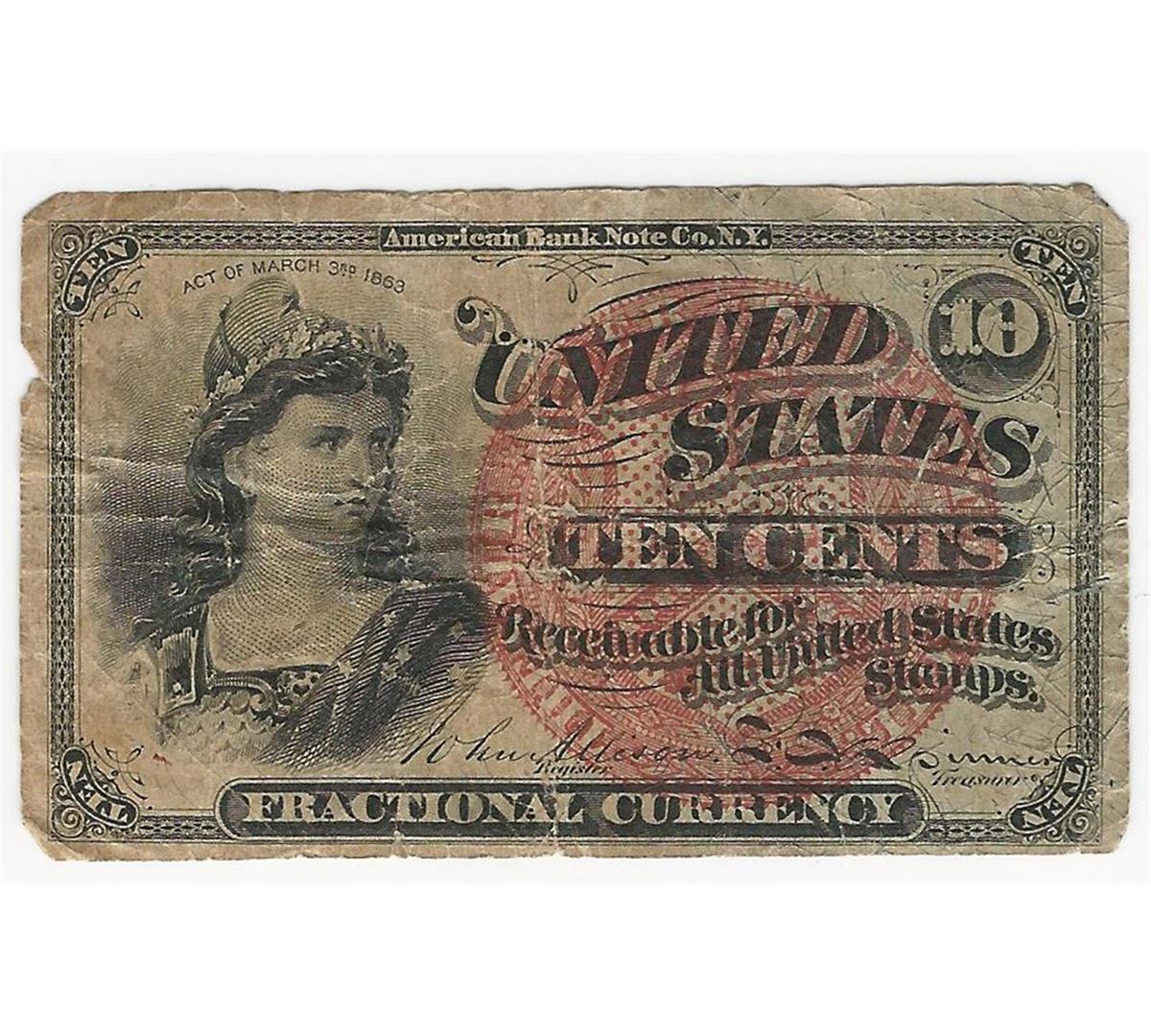 One March 3, 1863 Ten Cent Fourth Issue Fractional Note.