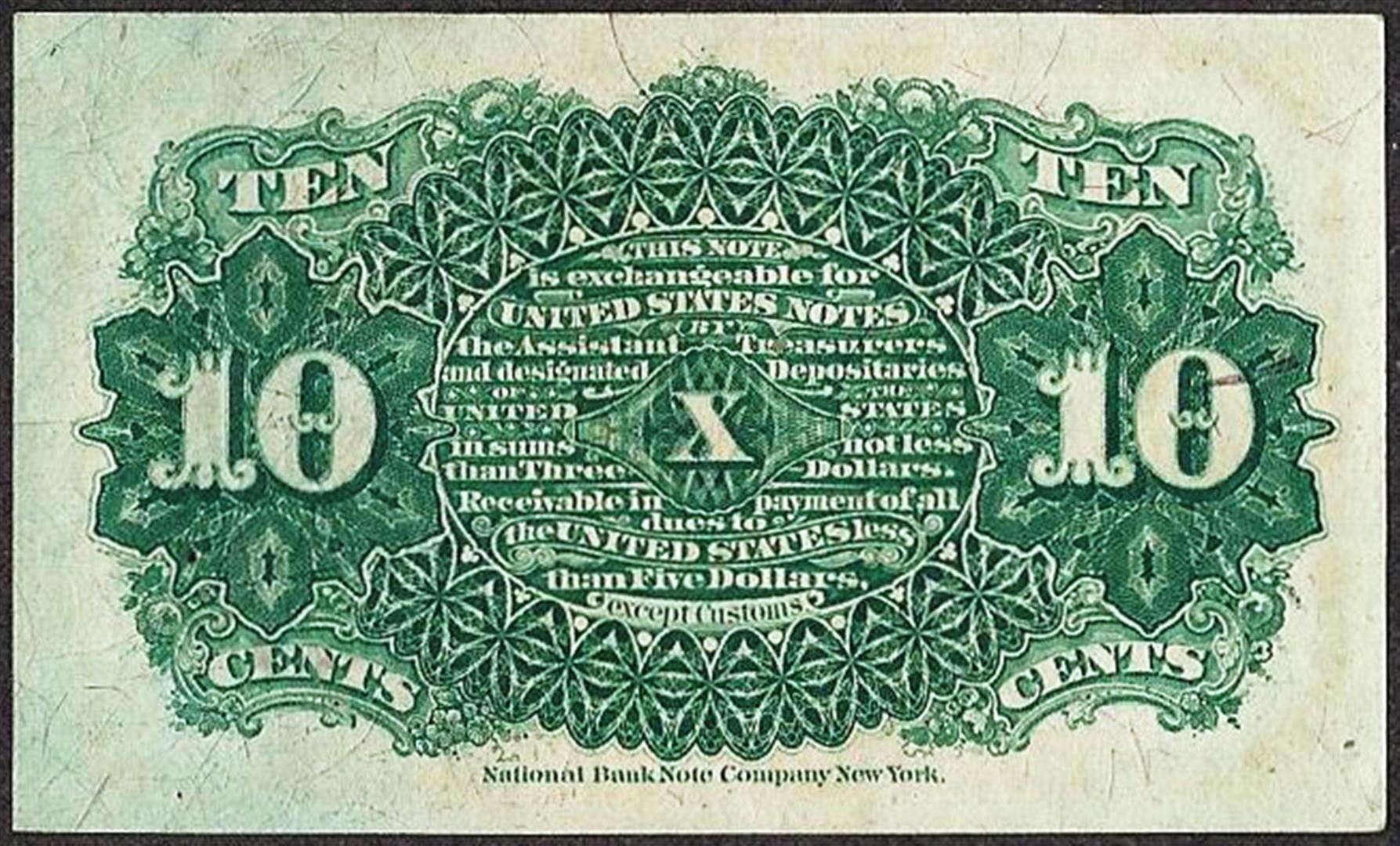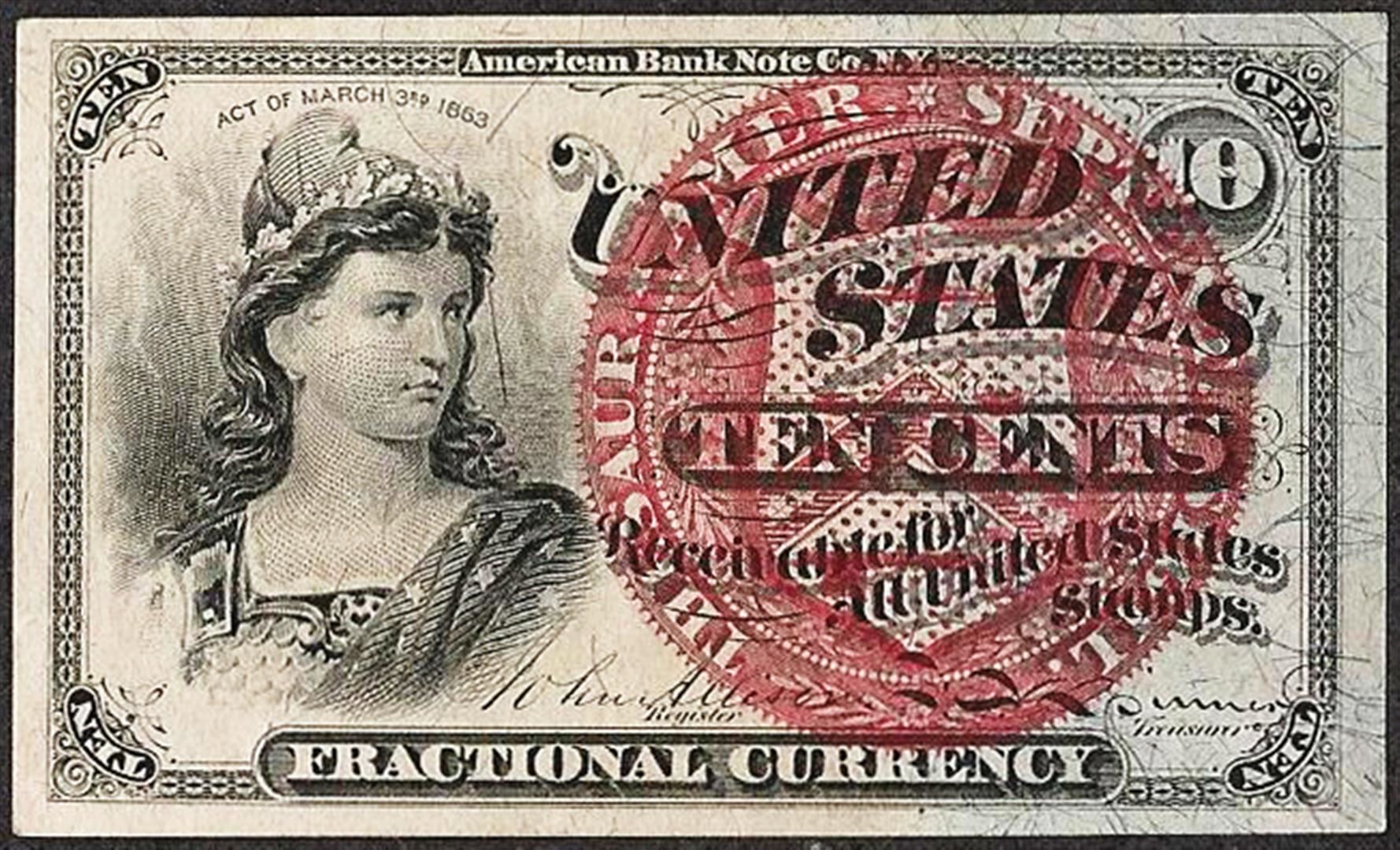 One March 3, 1863 Ten Cents Fourth Issue Fractional Currency Note.