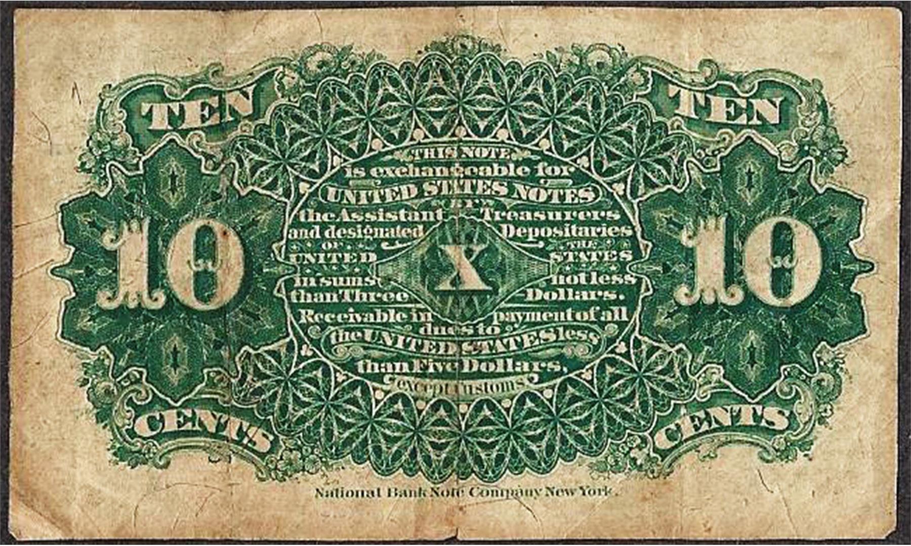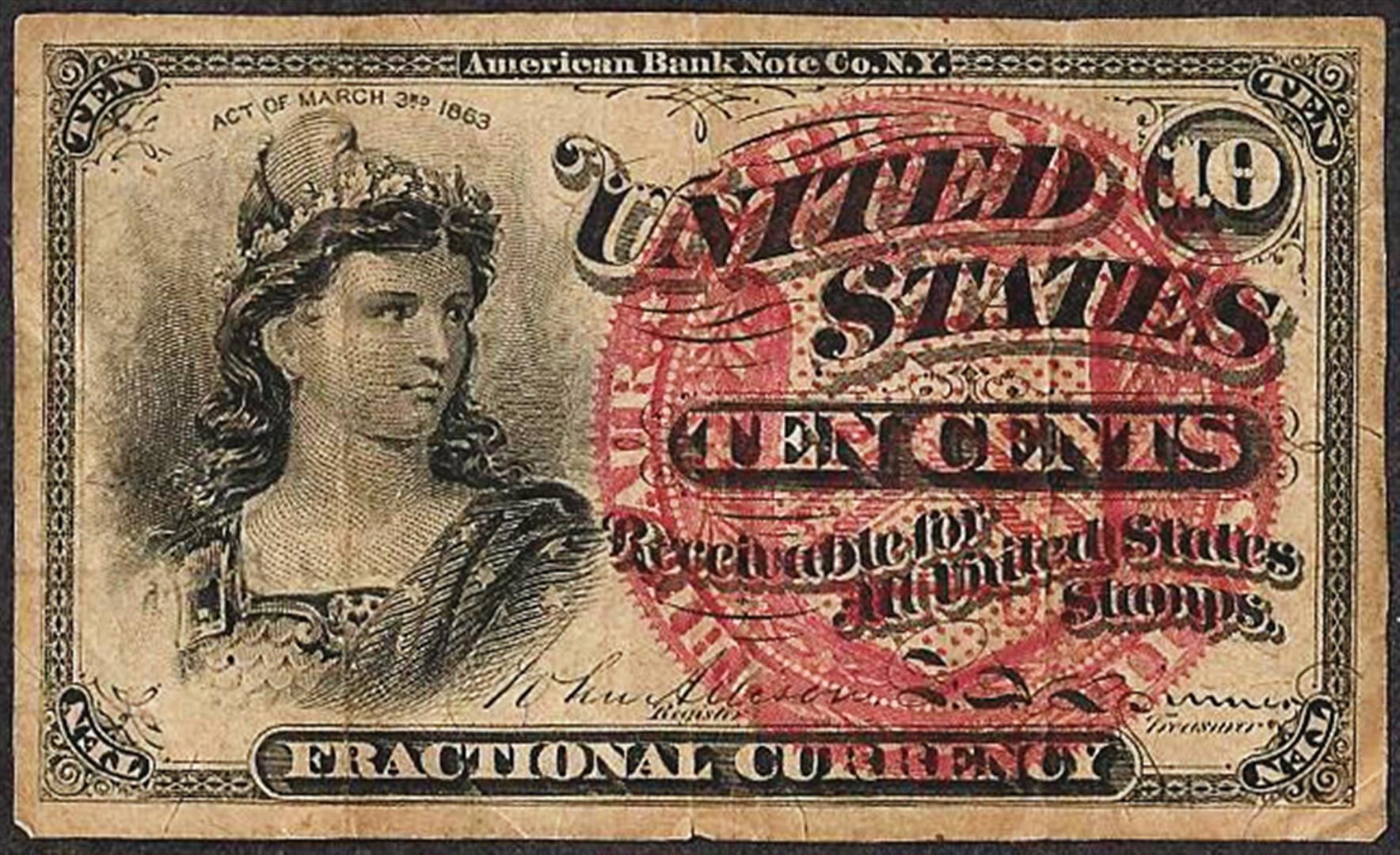 One March 3, 1863 Ten Cents Fourth Issue Fractional Currency Note.
