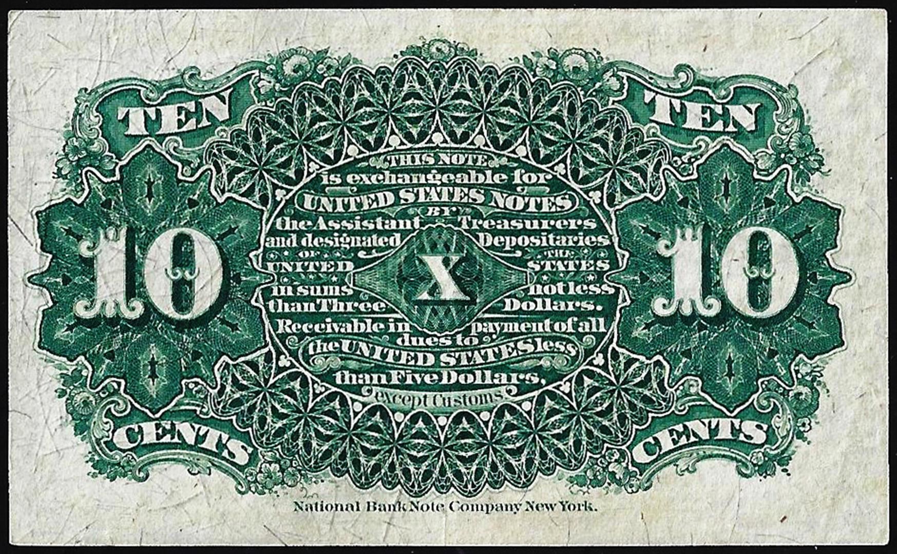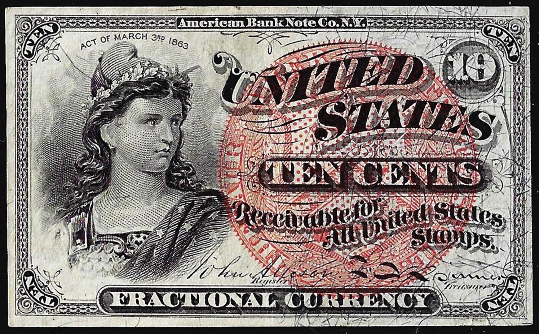 One March 3, 1863 Ten Cents Fourth Issue Fractional Currency Note.