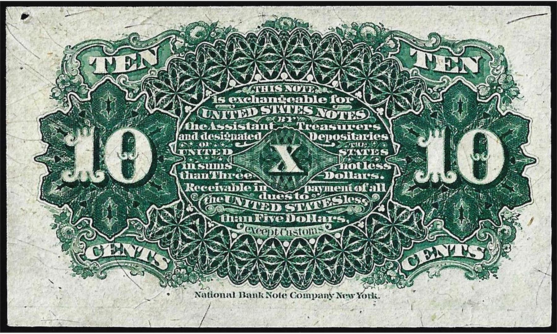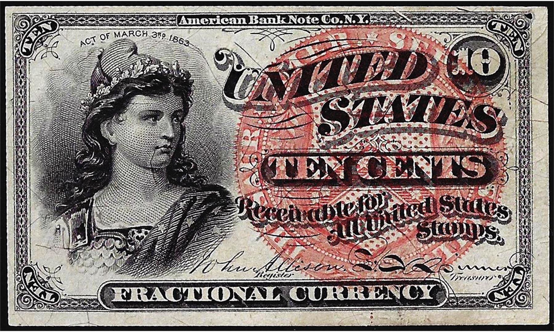 One March 3, 1863 Ten Cents Fourth Issue Fractional Currency Note.
