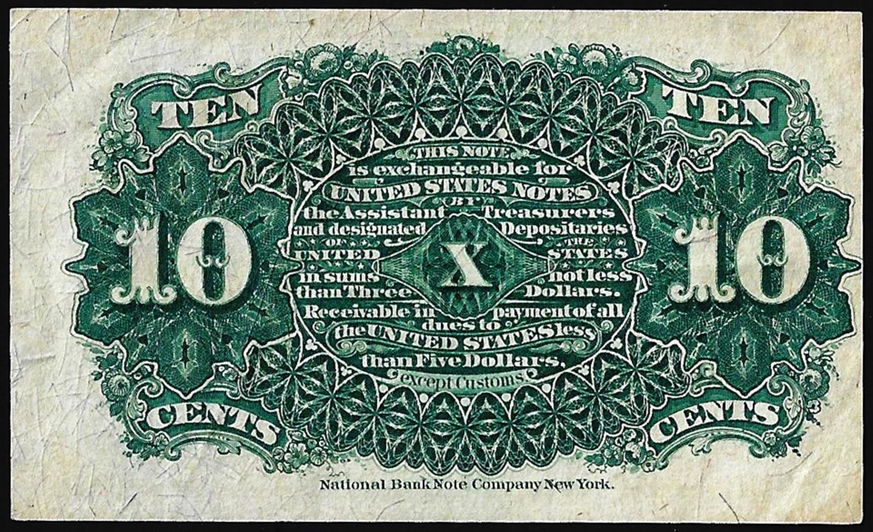 One March 3, 1863 Ten Cents Fourth Issue Fractional Currency Note.