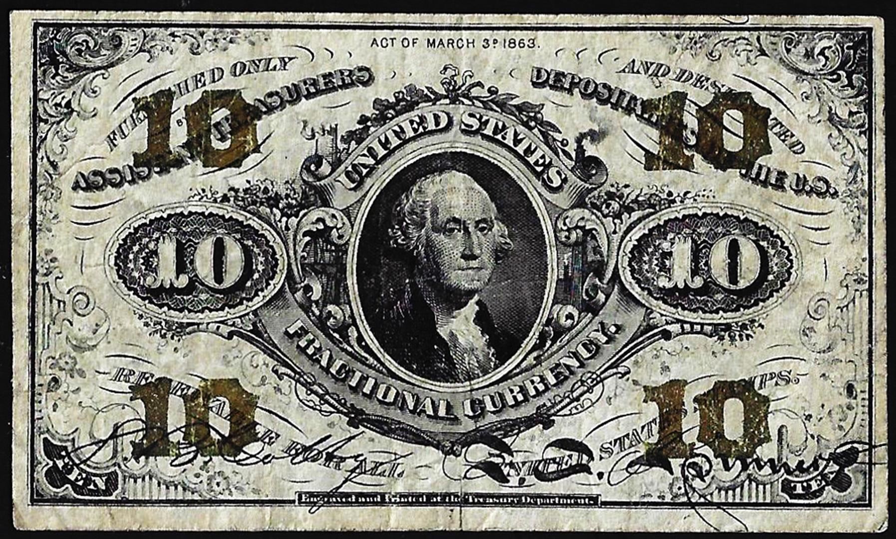 One March 3, 1863 Ten Cents Second Issue Fractional Currency Note.