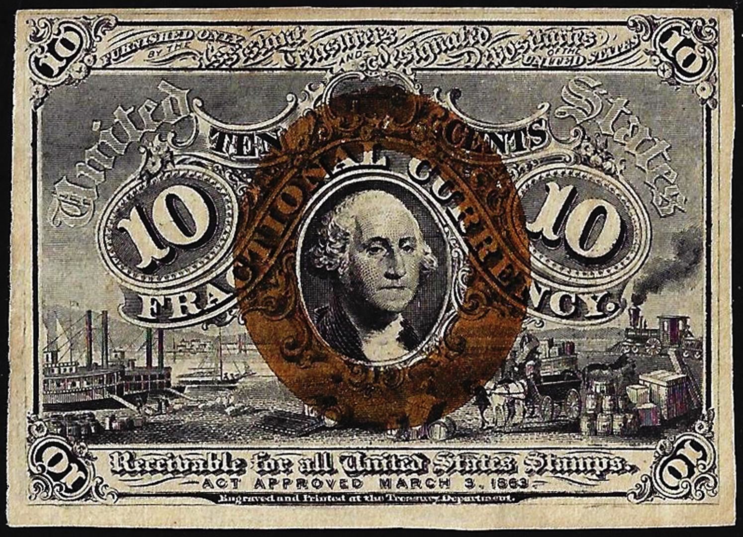 One March 3, 1863 Ten Cents Second Issue Fractional Currency Note.