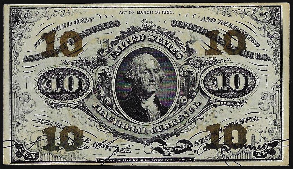 One March 3, 1863 Ten Cents Third Issue Fractional Currency Note.