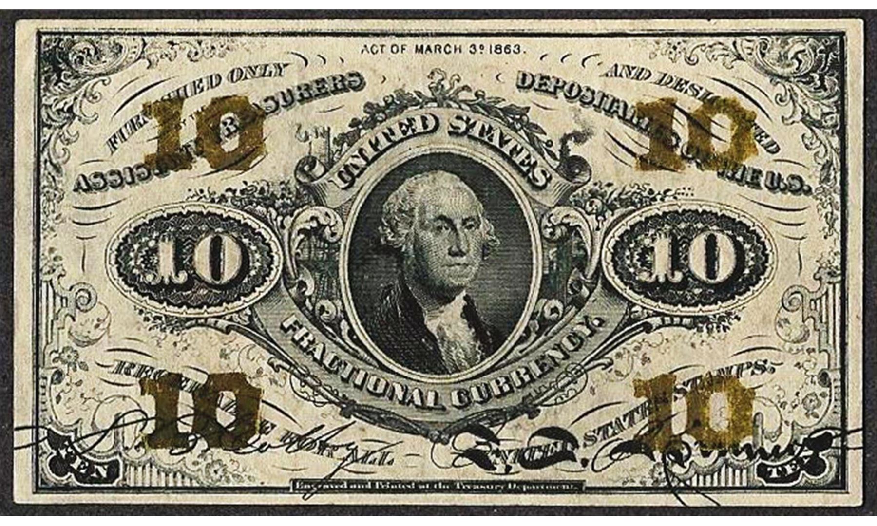 One March 3, 1863 Ten Cents Third Issue Fractional Currency Note.