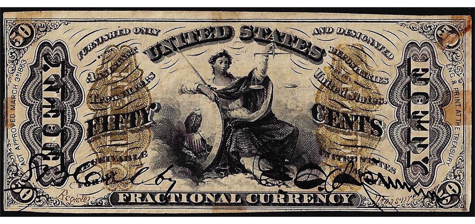One March 3, 1863 Third Issue Fifty Cents Fractional Currency Note.