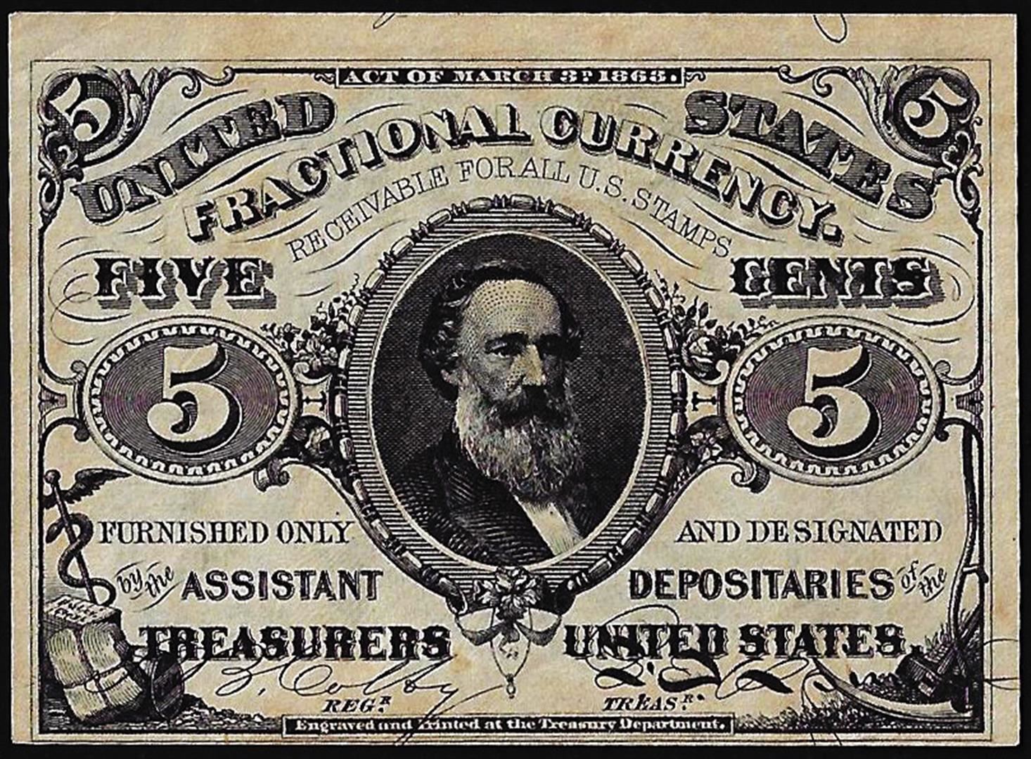 One March 3, 1863 Third Issue Five Cents Fractional Currency Note.