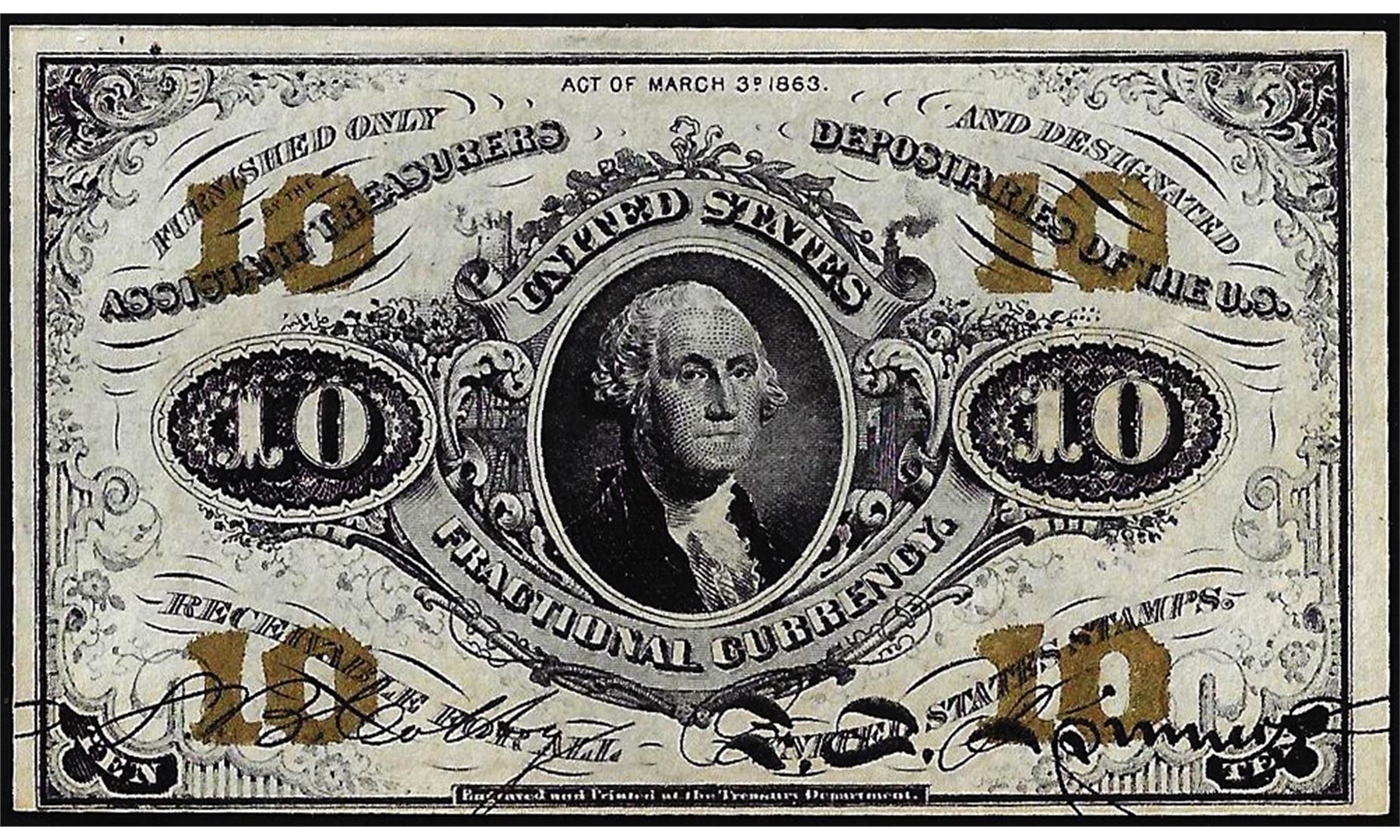 March 3, 1863 Third Issue Ten Cents Fractional Currency Note