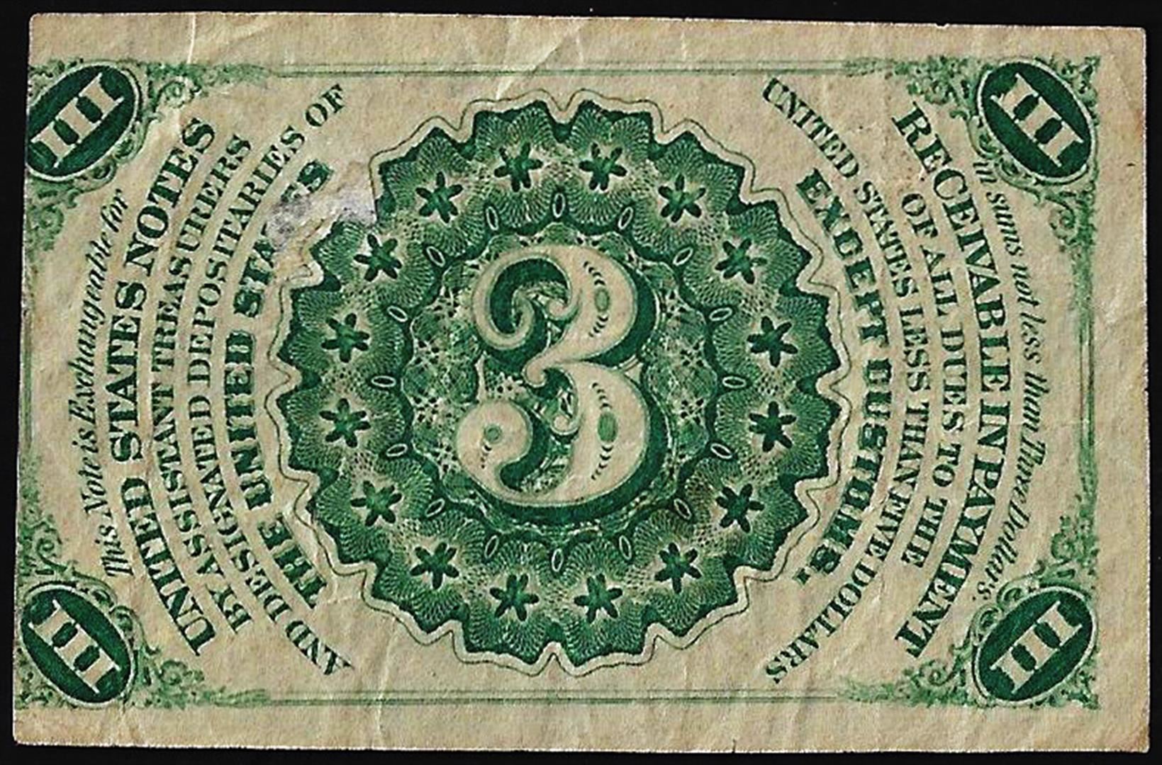 One March 3, 1863 Third Issue Three Cents Fractional Currency Note.