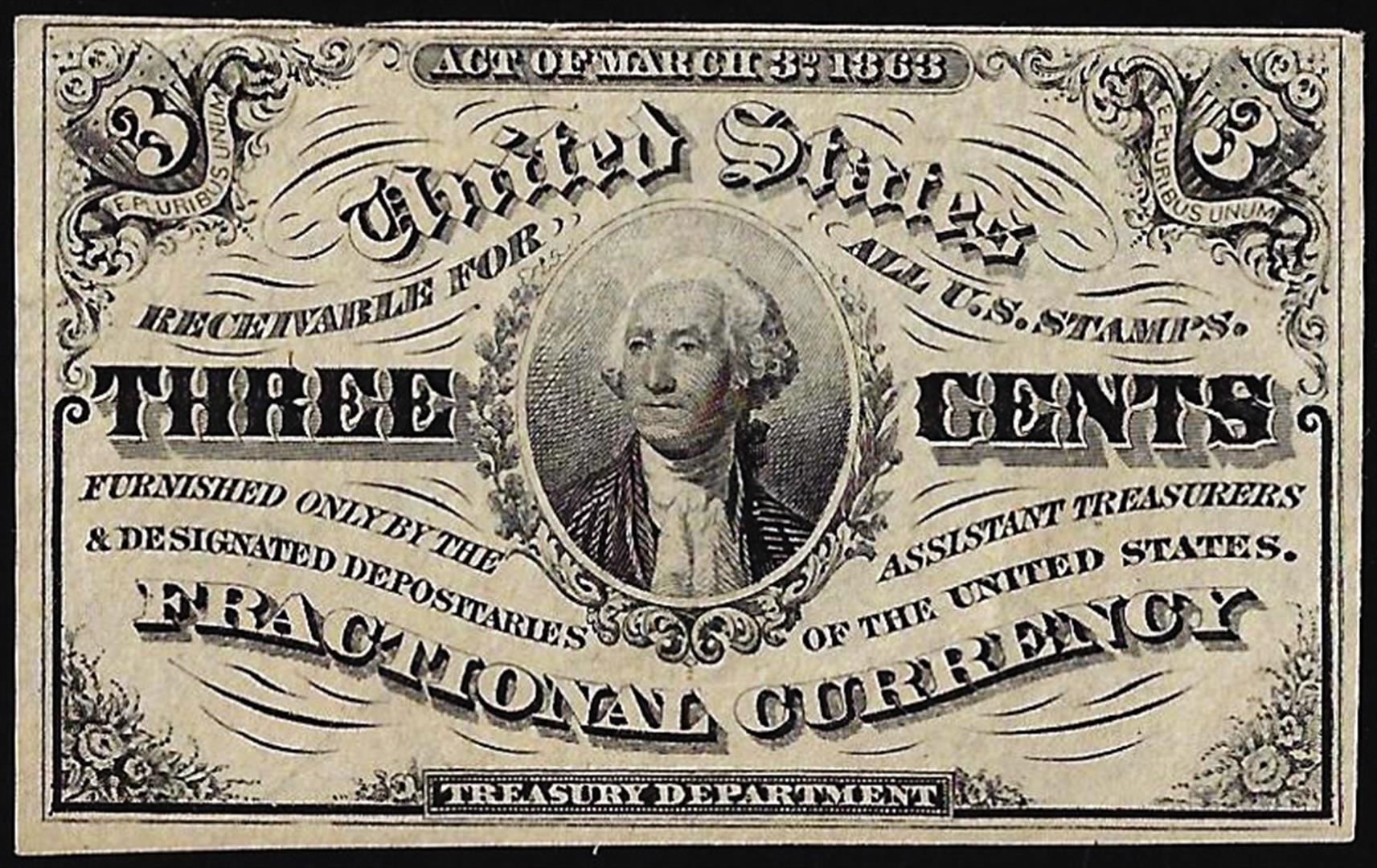One March 3, 1863 Third Issue Three Cents Fractional Currency Note.