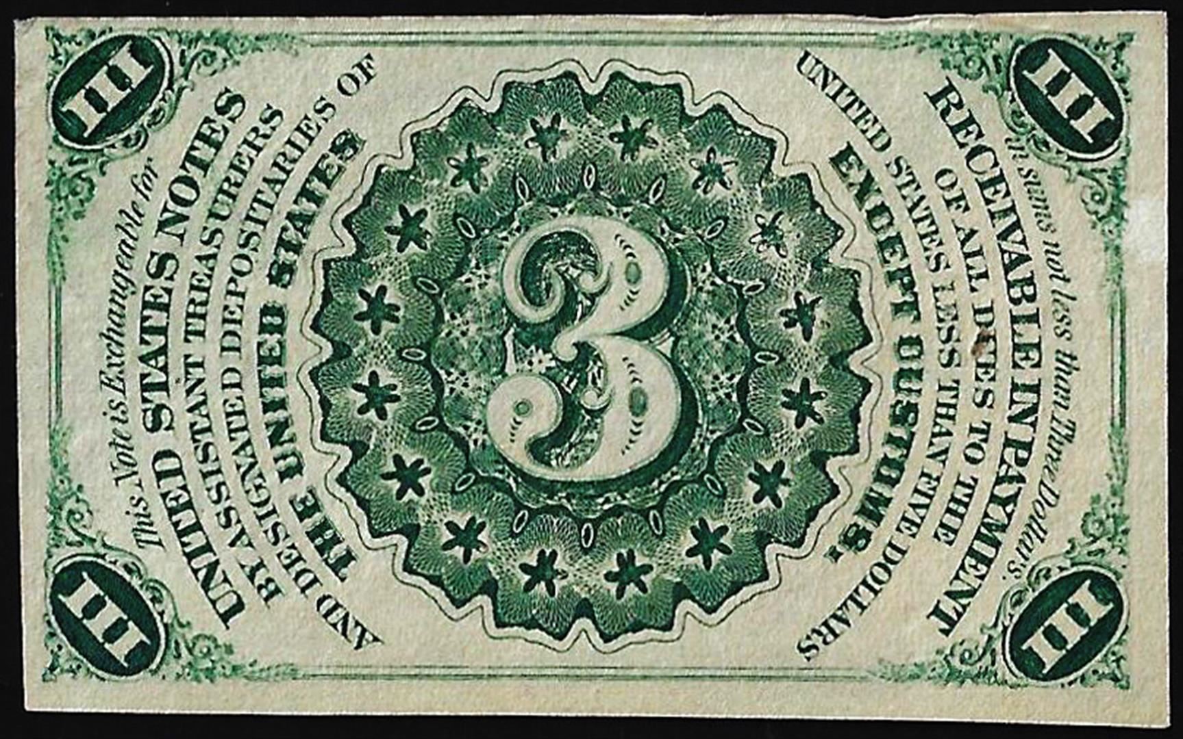 March 3, 1863 Third Issue Three Cents Fractional Currency Note