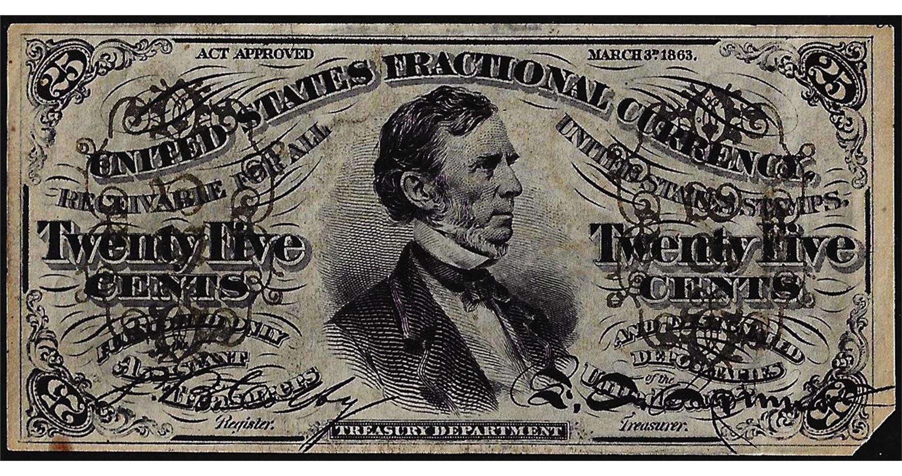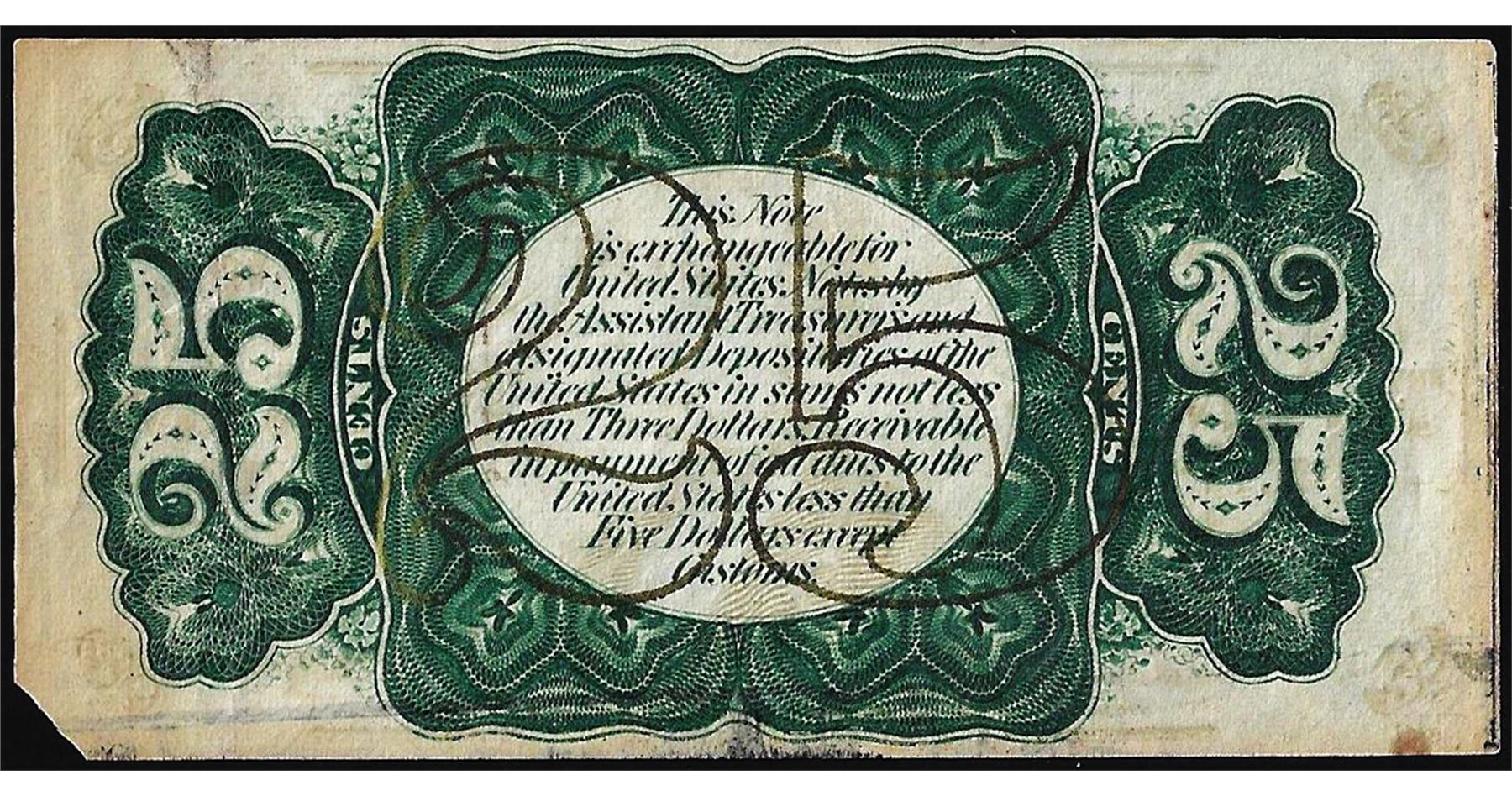 One March 3, 1863 Third Issue Twenty-Five Cents Fractional Currency Note Missing Corner.