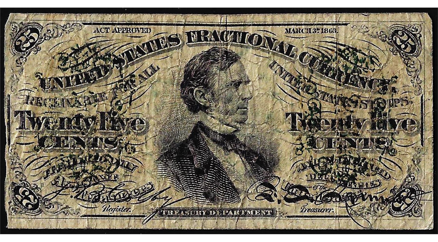 One March 3, 1863 Third Issue Twenty-Five Cents Fractional Currency Note.