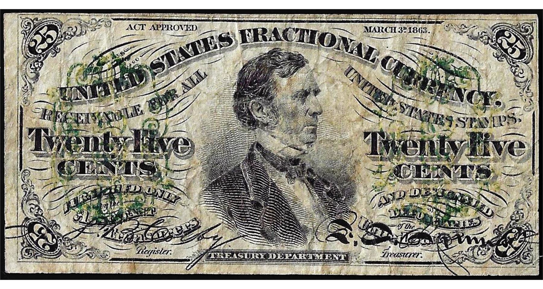 One March 3, 1863 Third Issue Twenty-Five Cents Fractional Currency Note.