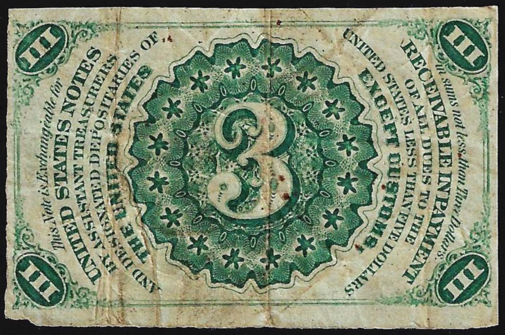 One March 3, 1863 Three Cents Third Issue Fractional Currency Note.