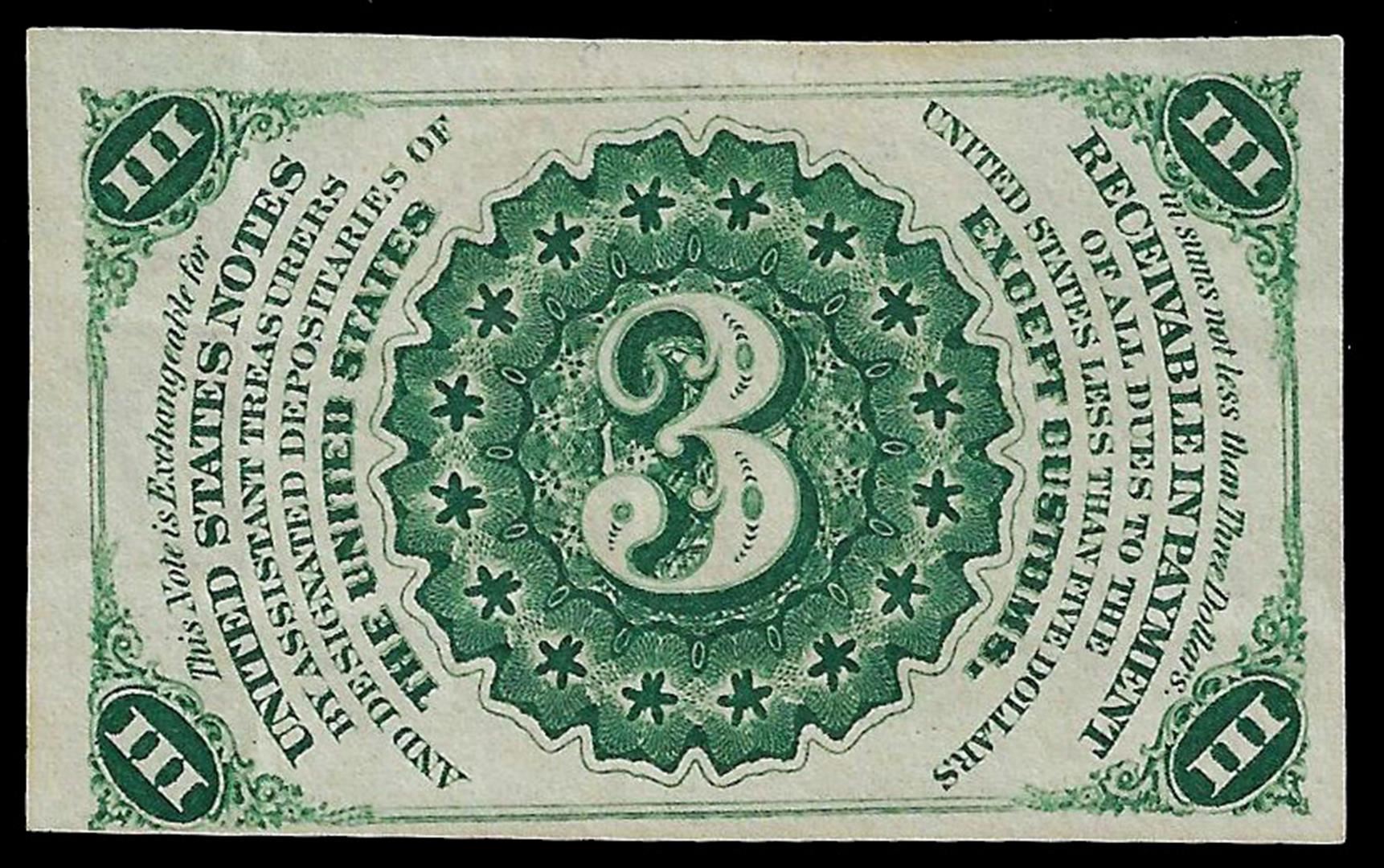 One March 3, 1863 Three Cents Third Issue Fractional Currency Note.