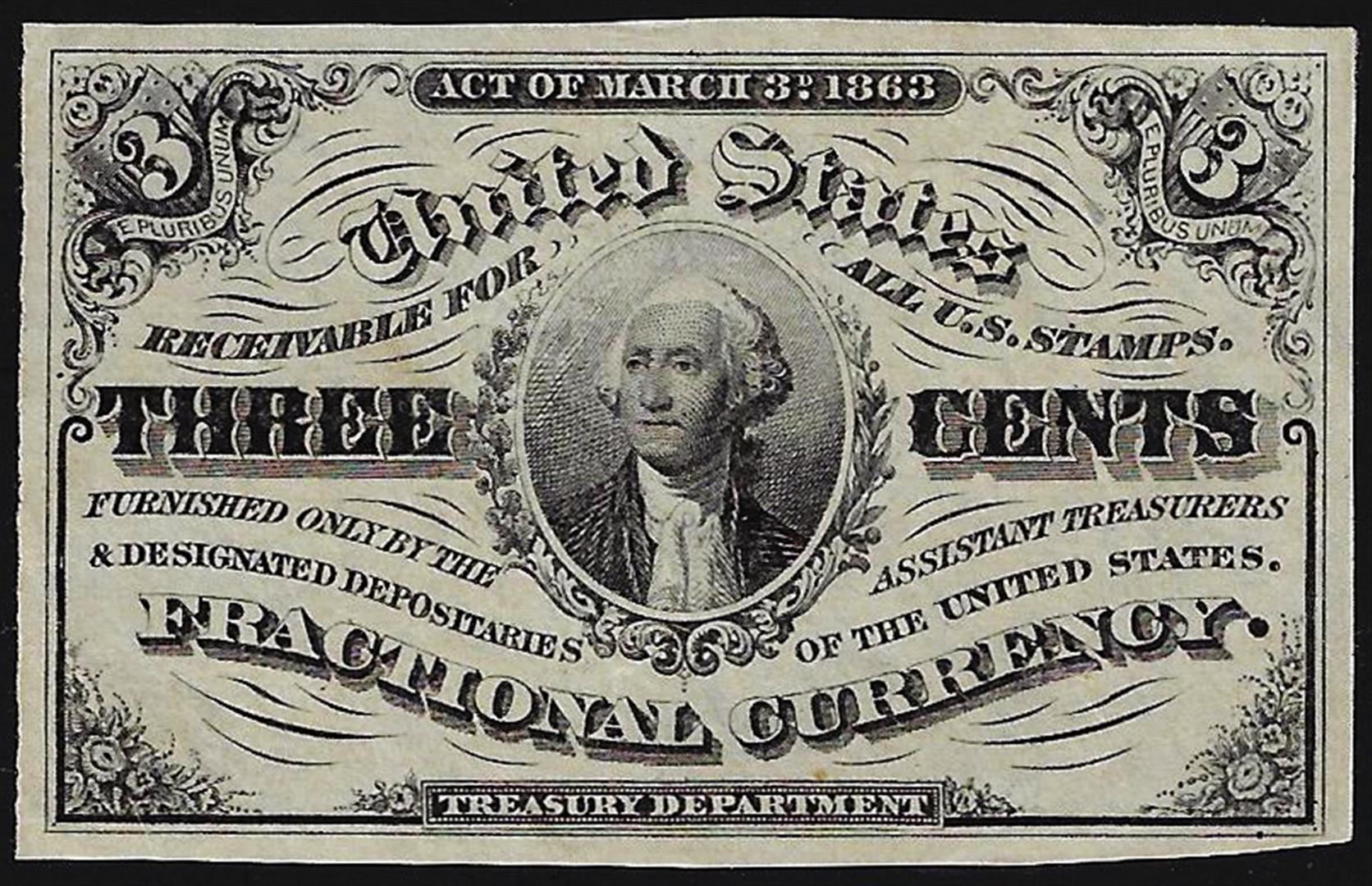 One March 3, 1863 Three Cents Third Issue Fractional Note.