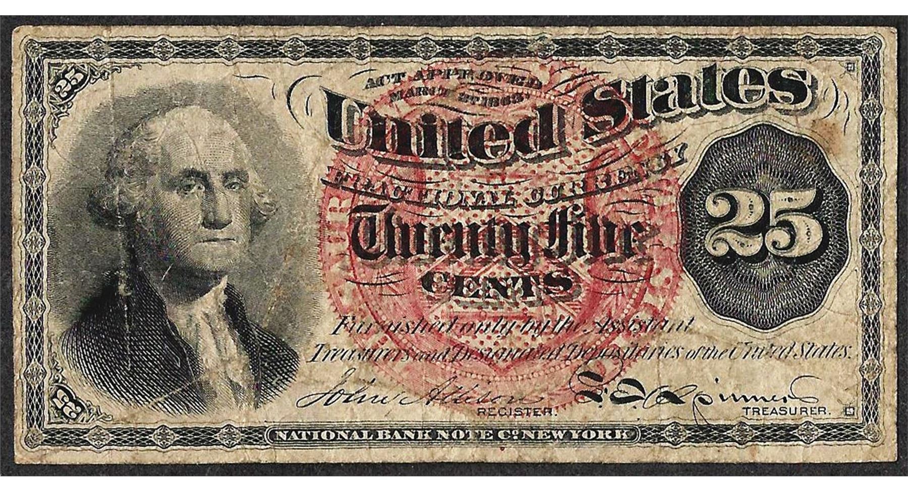One March 3, 1863 Twenty-Five Cent 4th Issue Fractional Note.