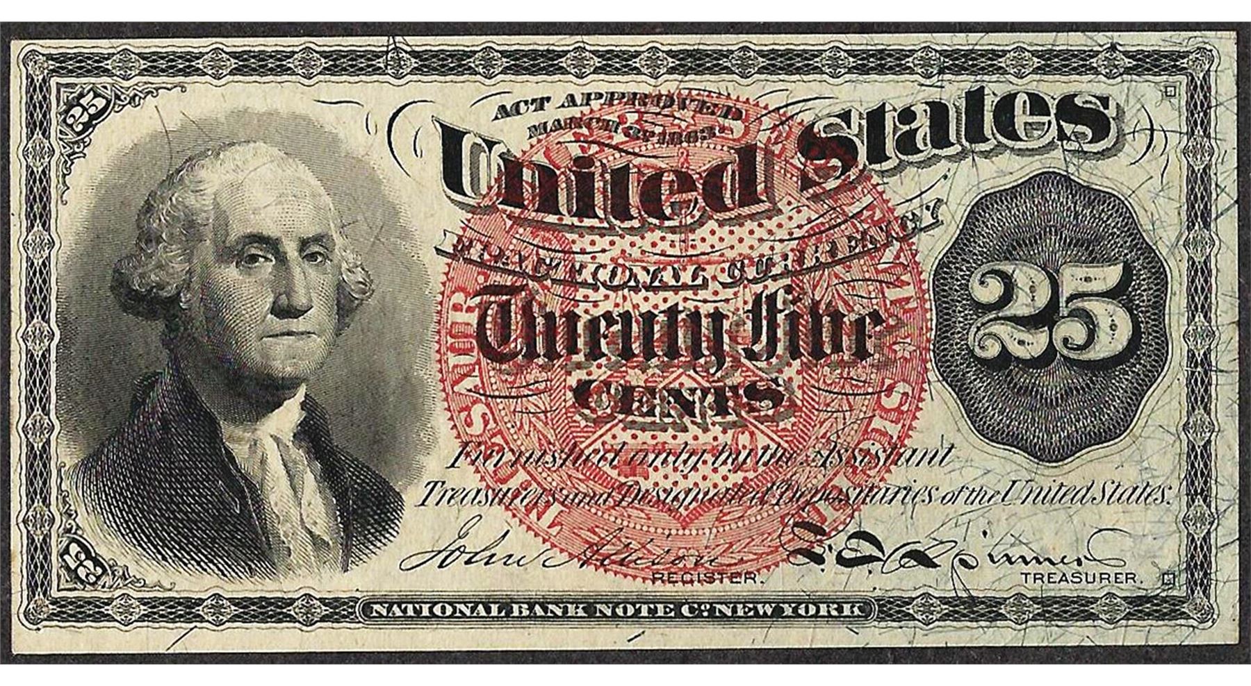 One March 3, 1863 Twenty Five Cents 4th Issue Fractional Note.
