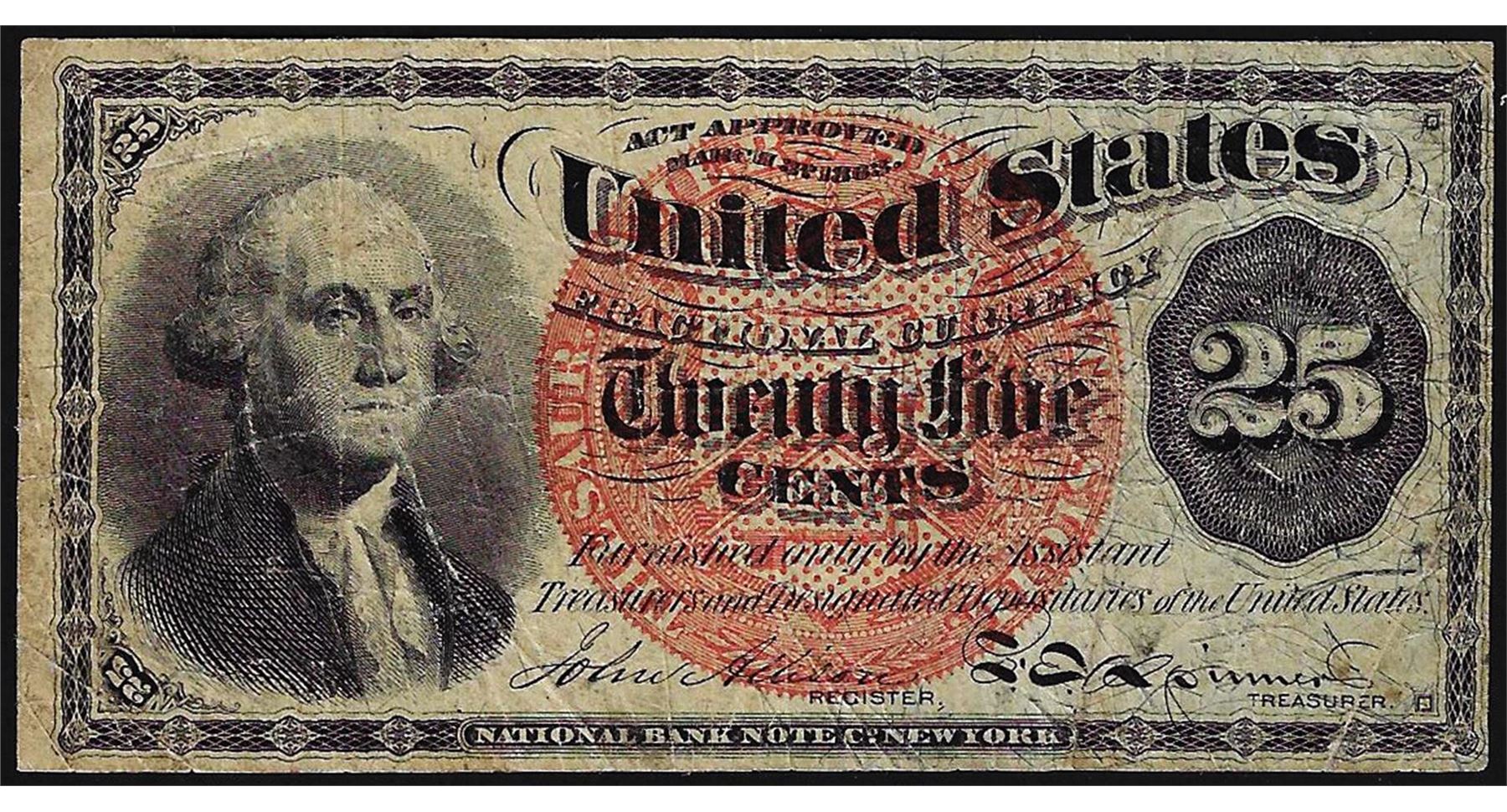 One March 3, 1863 Twenty Five Cents Fourth Issue Fractional Currency Note - Internal Tear.