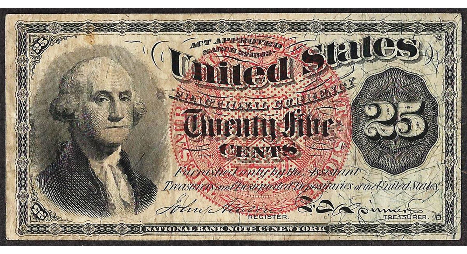 One March 3, 1863 Twenty-Five Cents Fourth Issue Fractional Currency Note.