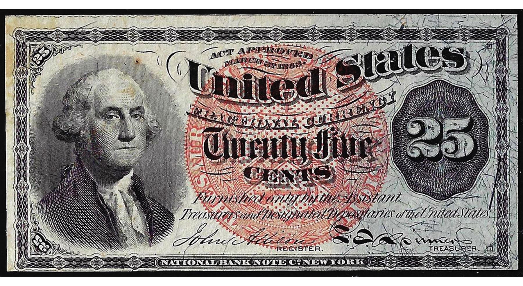 One March 3, 1863 Twenty-Five Cents Fourth Issue Fractional Currency Note.