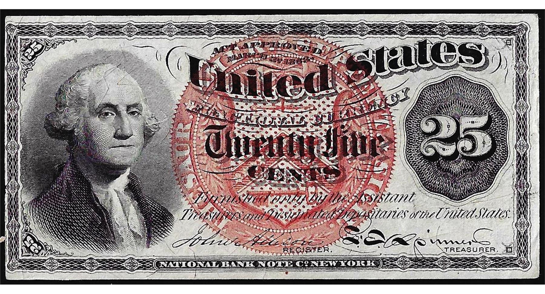 One March 3, 1863 Twenty-Five Cents Fourth Issue Fractional Currency Note.